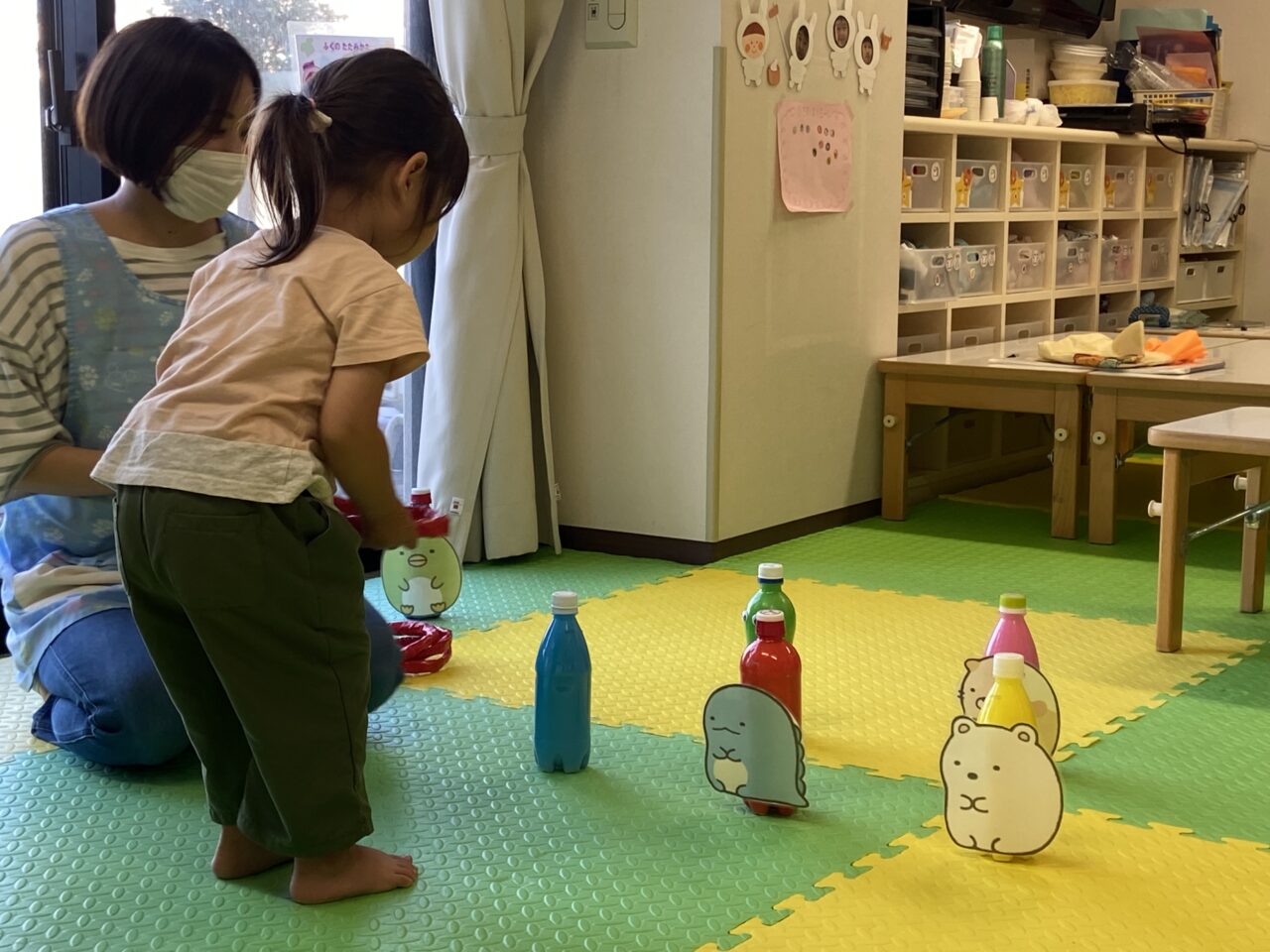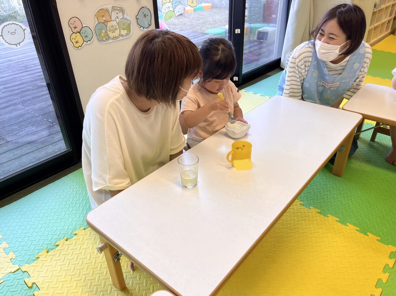 他のお友達が食べ終わるまでの間、後ろに飾っていたすみっコぐらしのキャラクターを教えてもらいました?