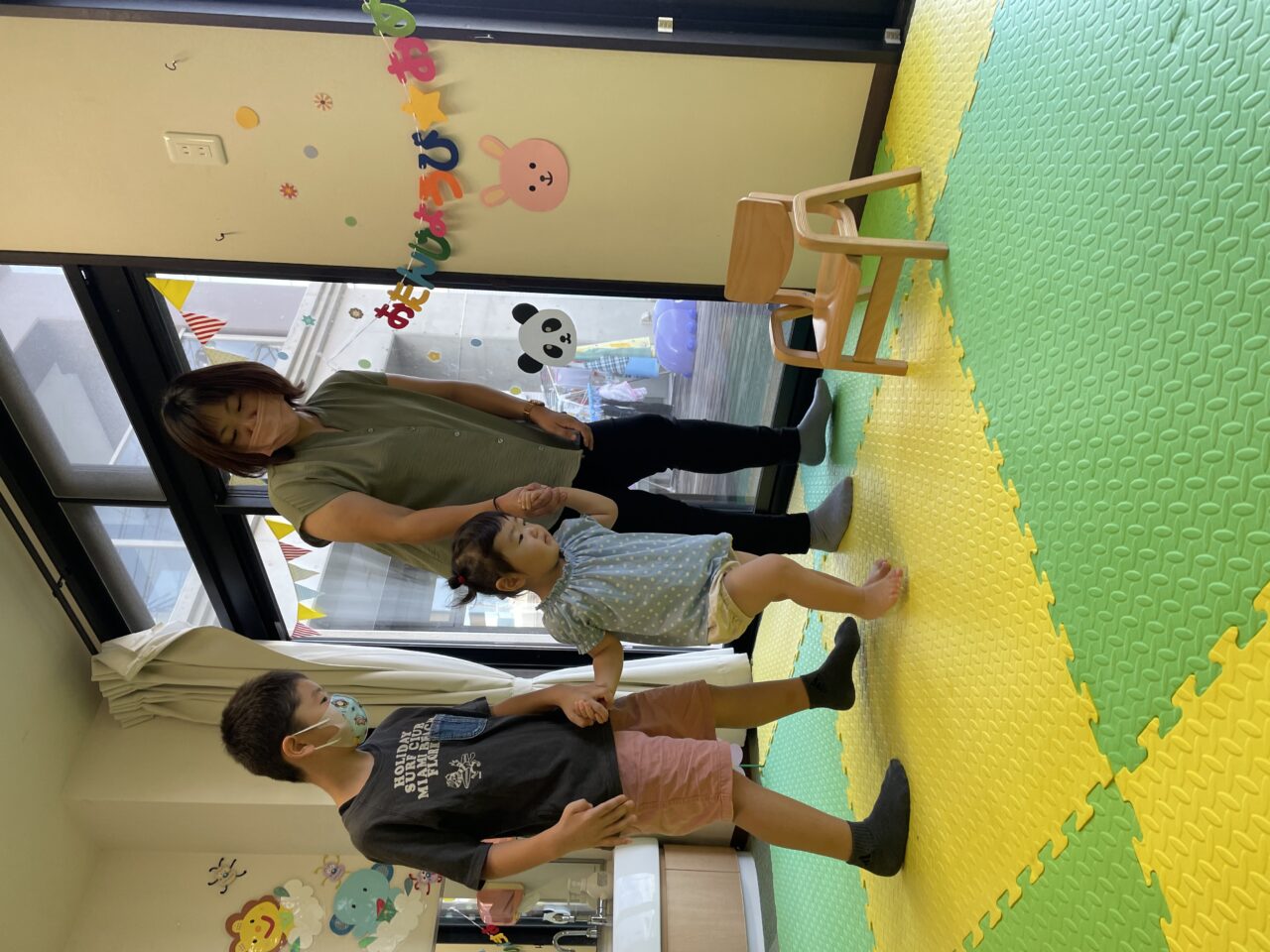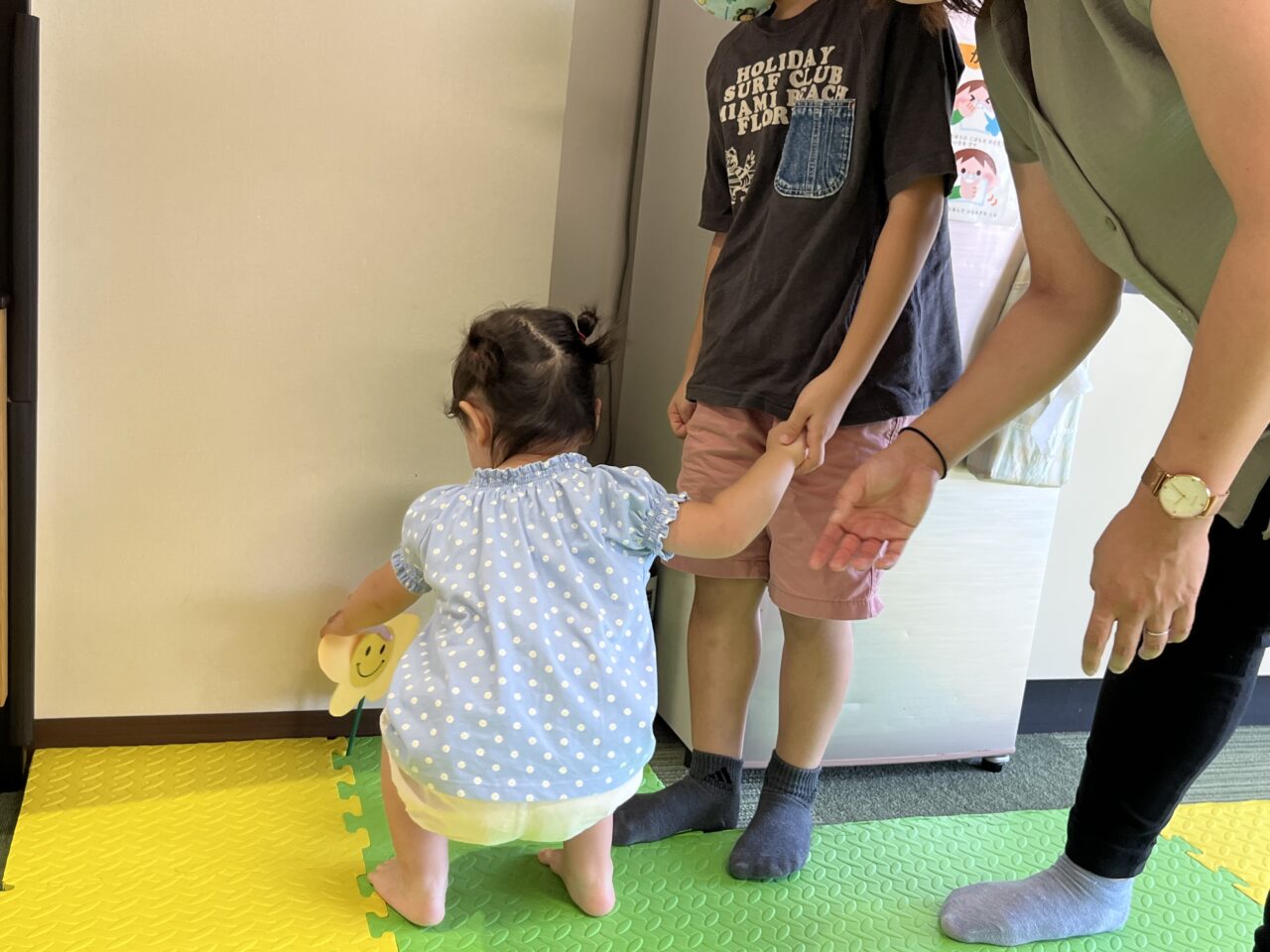 少し緊張しているMちゃんですが、お兄ちゃんとお母さんがいることでとっても嬉しそうです??