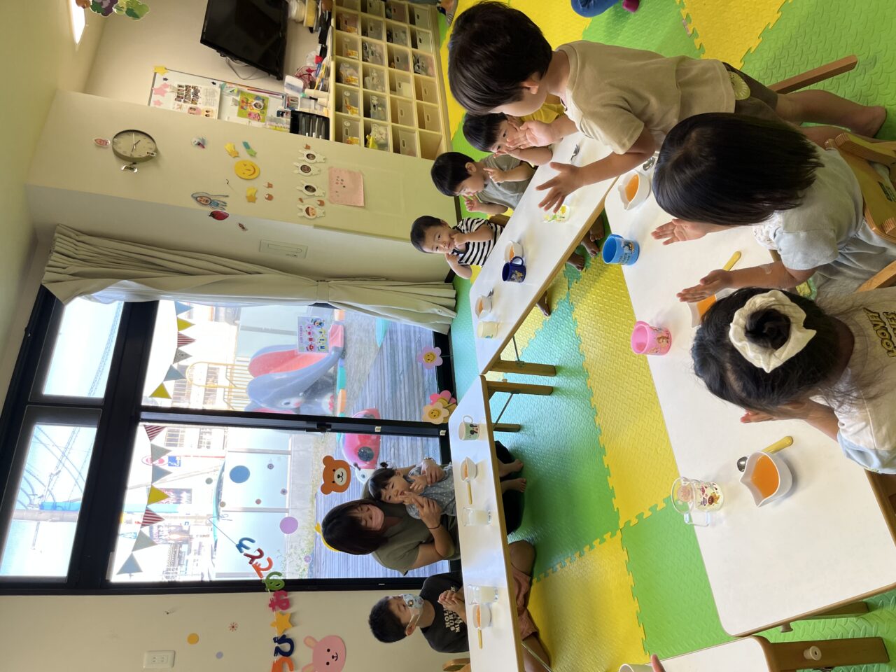 いただきますのお歌を歌ってから、みんなで楽しくおやつタイムです?