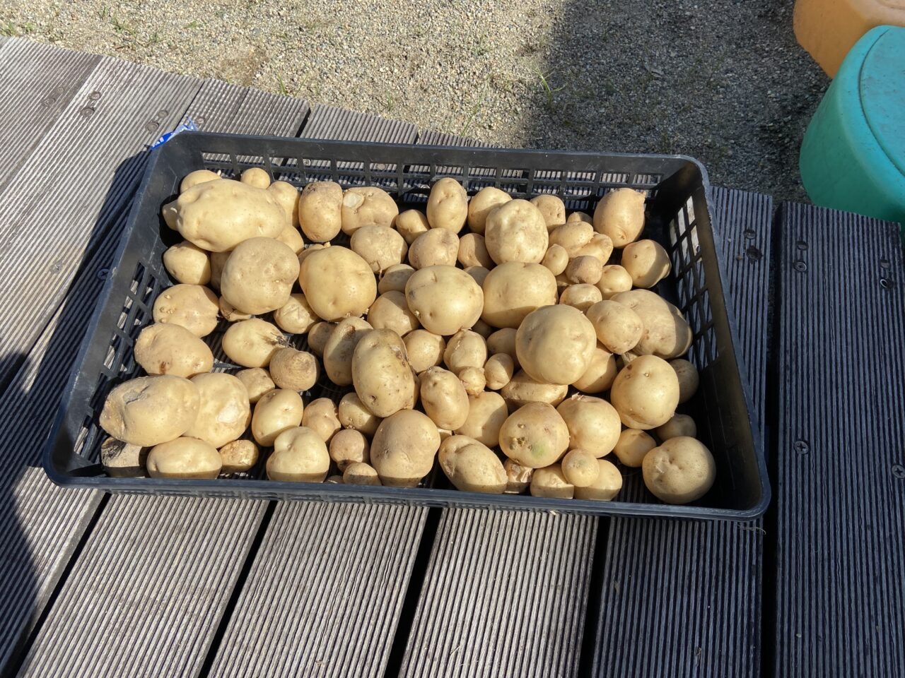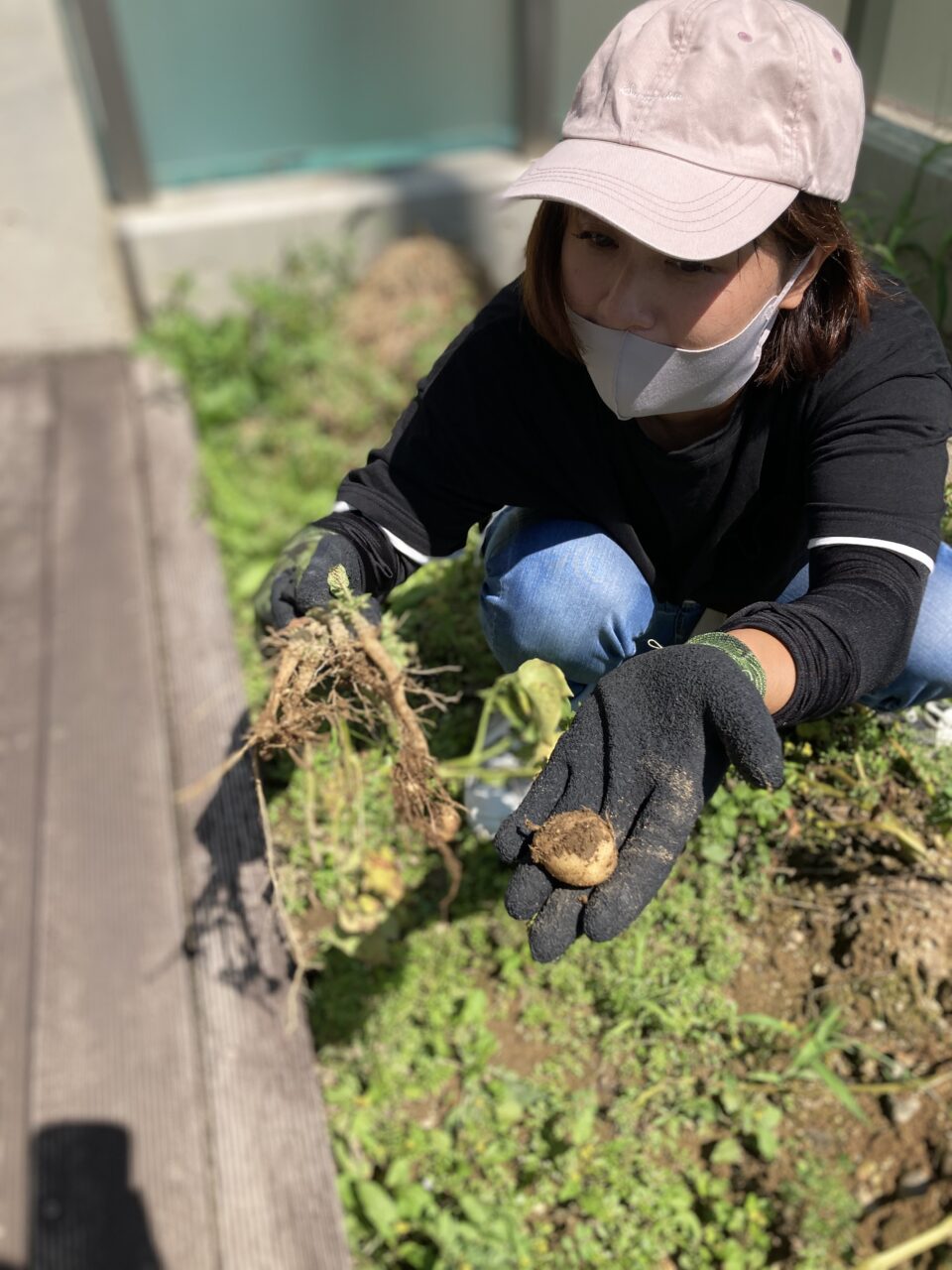 全部抜いたら、土の中にかくれんぼしているじゃがいもさん達を見つけました。