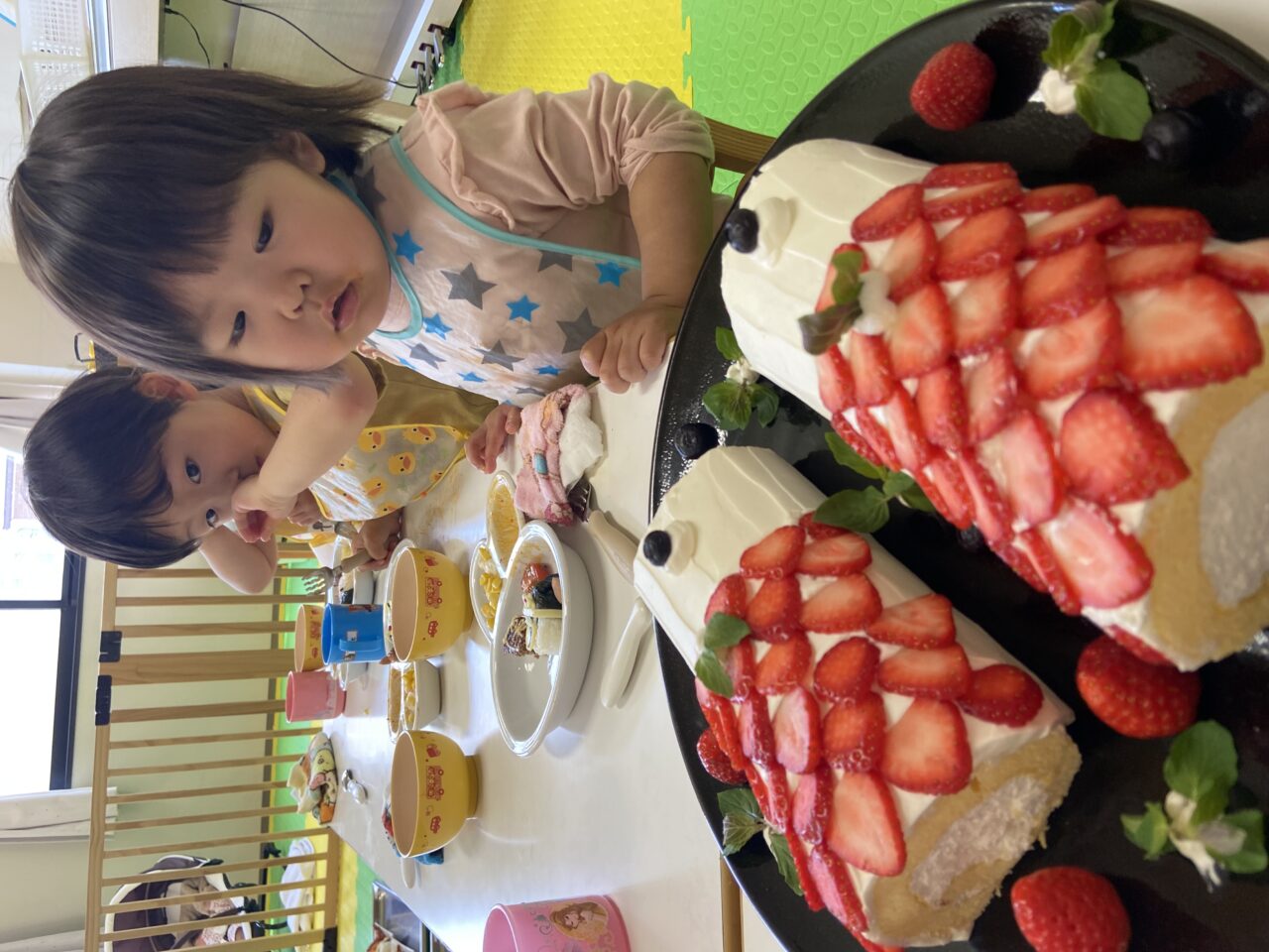 デザートはデカデカイチゴピカピカこいのぼりロールケーキ?