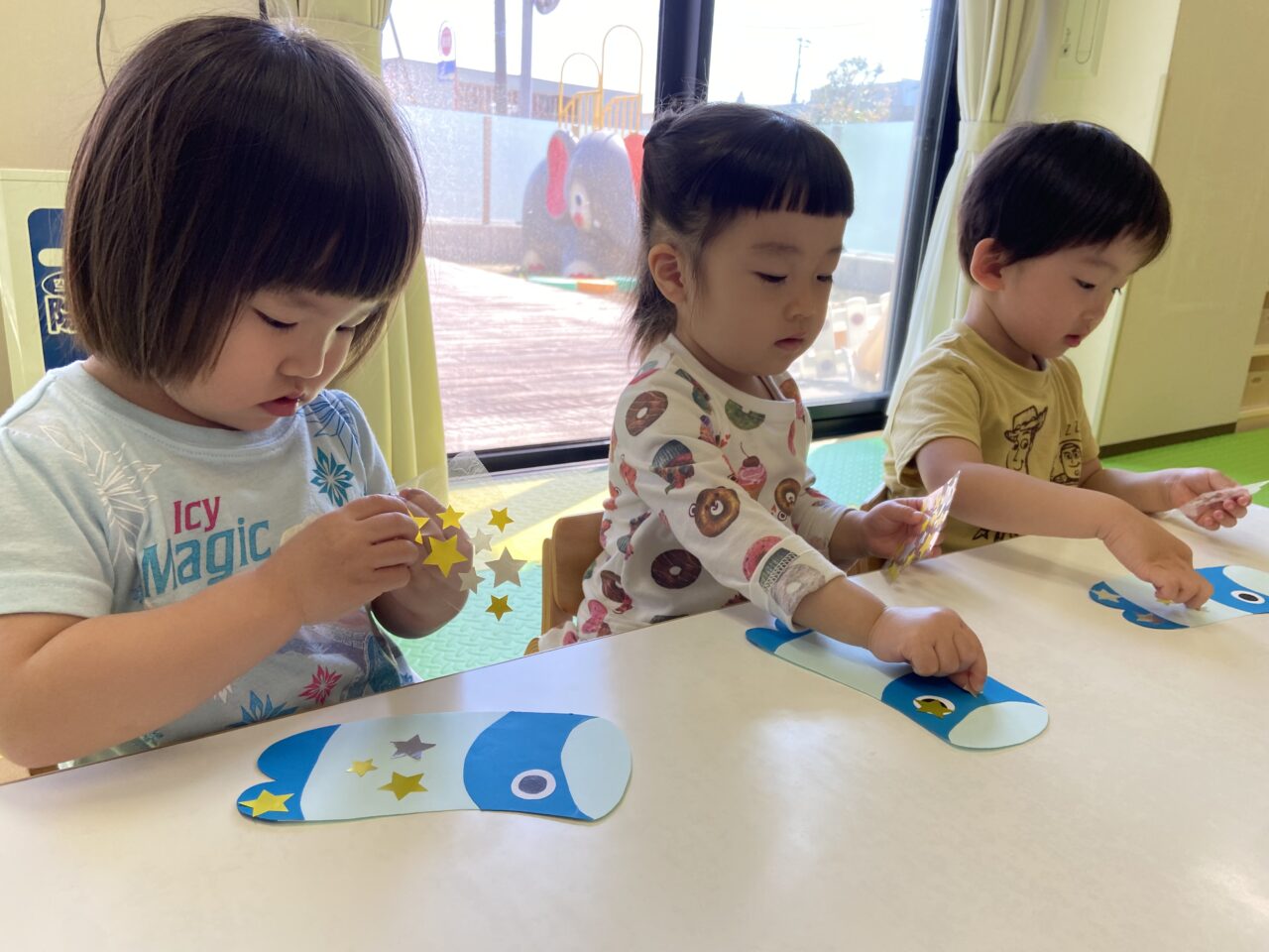 こいのぼりにシールを自由に貼って、かわいいこいのぼりに変身✨