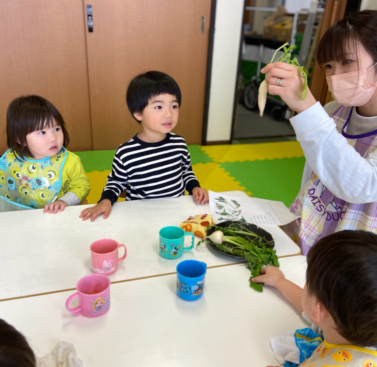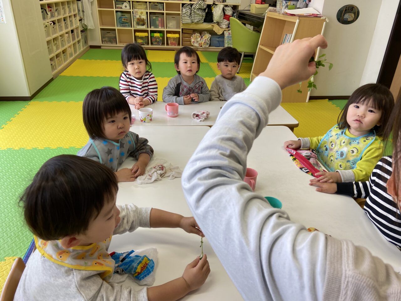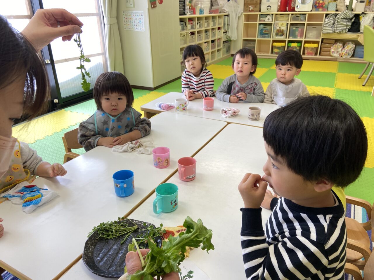 七草に興味津々の子どもたち!七草粥を食べて、2022年も元気いっぱいに過ごせそうです‼️