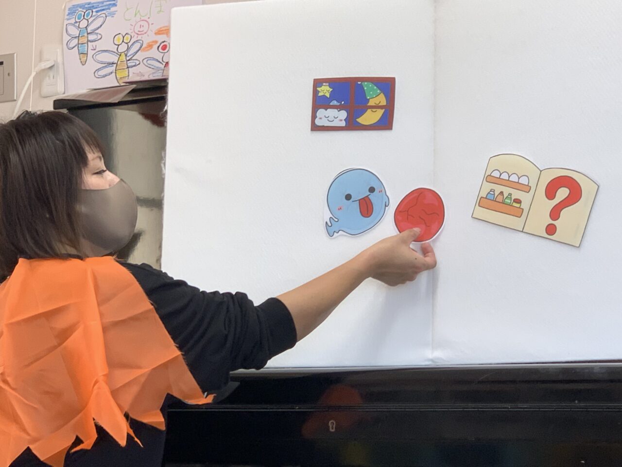 お部屋に戻った後は、“くいしんぼうのおばけのこ”のパネルシアターをたのしみました?