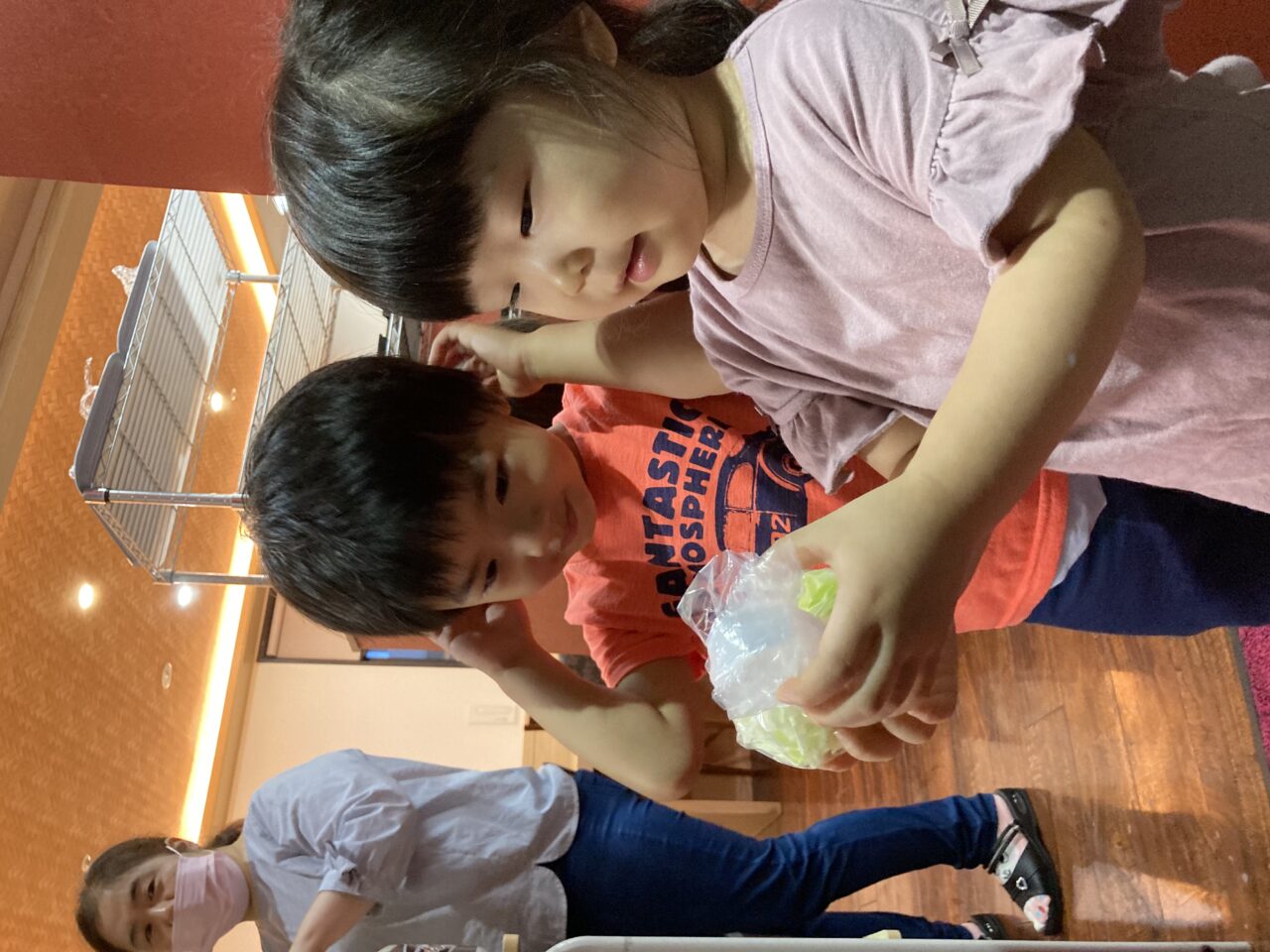 幼虫は成虫と同じように野菜やかつお節を食べるそうなので、みんなでキャベツをもらいに行きました✨