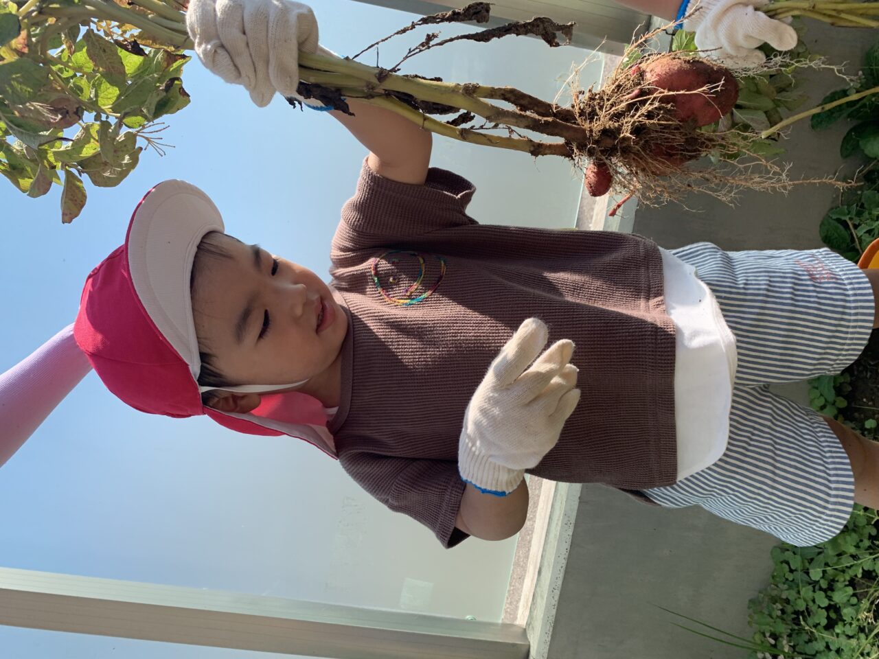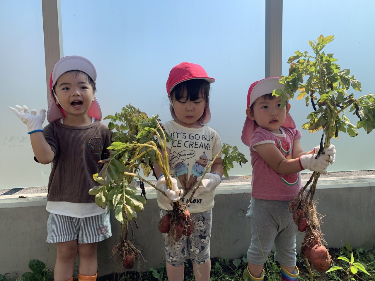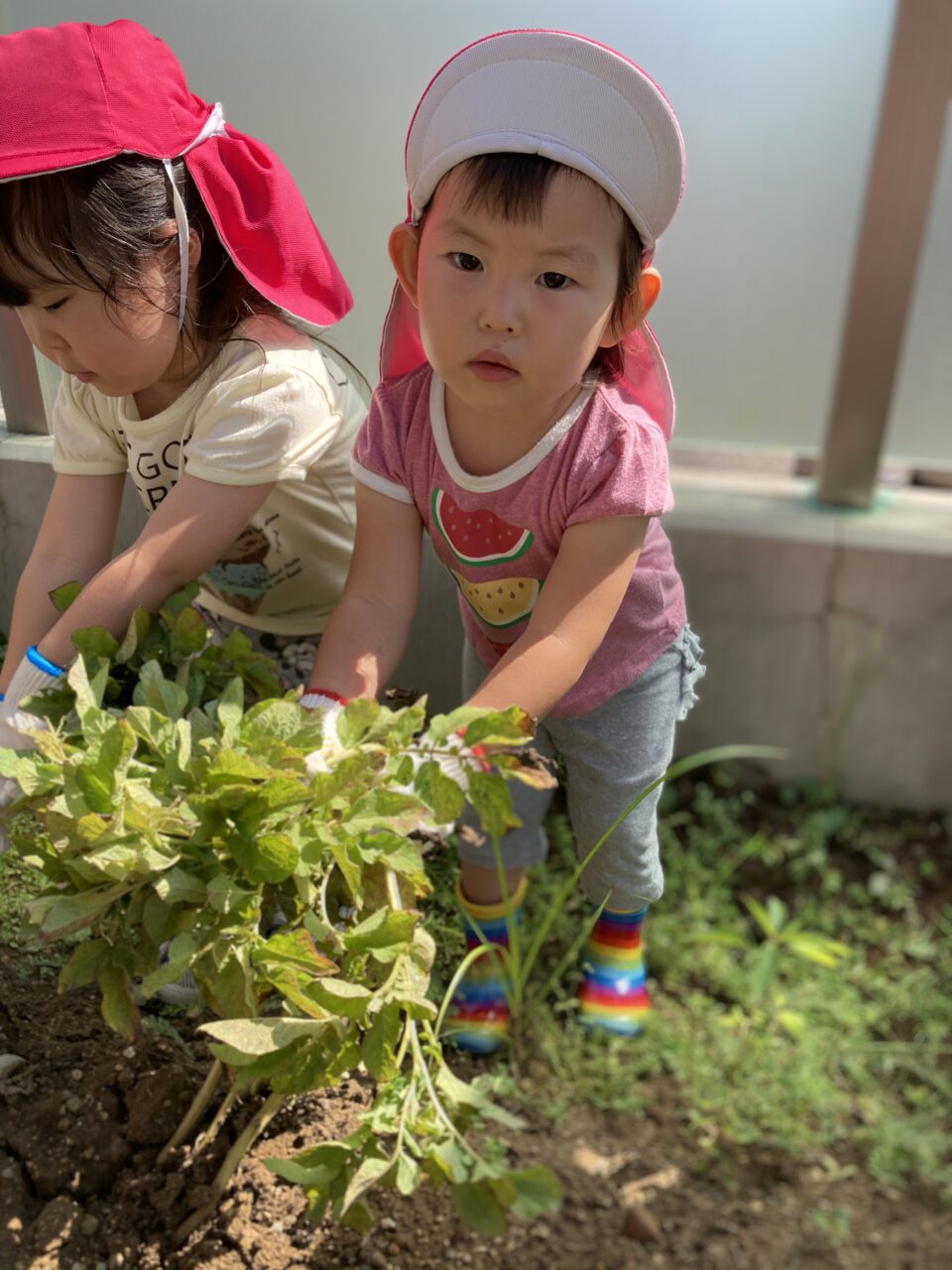 ということで、今日はお家の方々のご協力により、登園完了時間を少し早めて、涼しいうちにジャガイモ掘りを行いました???✨