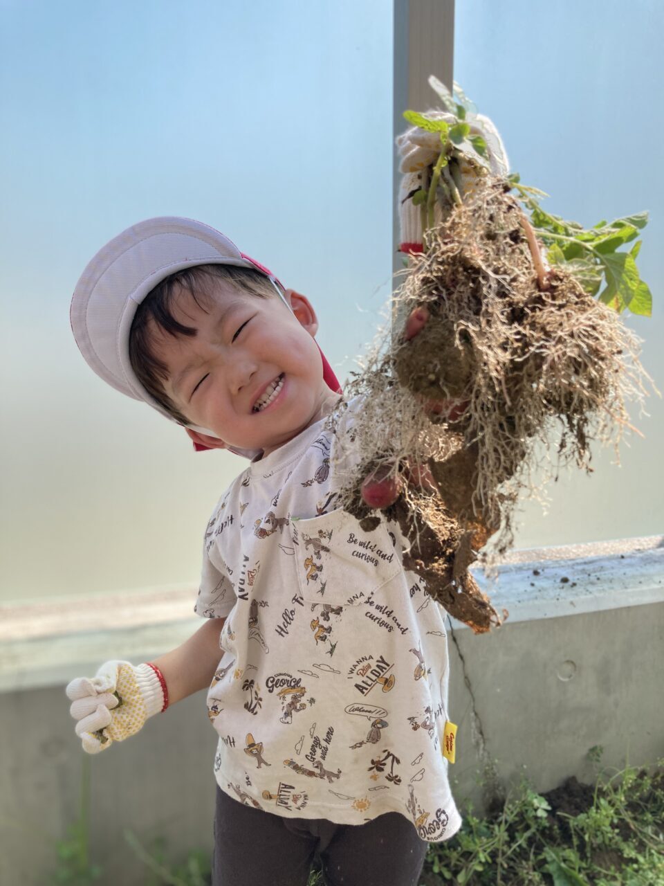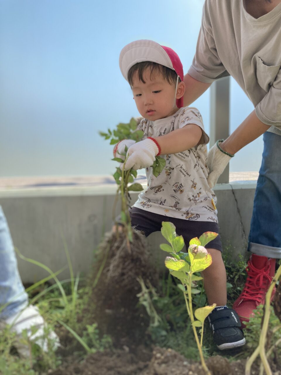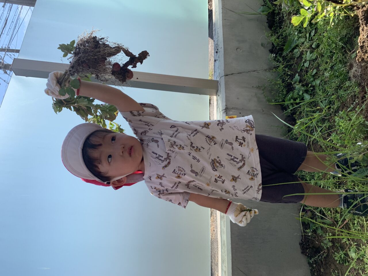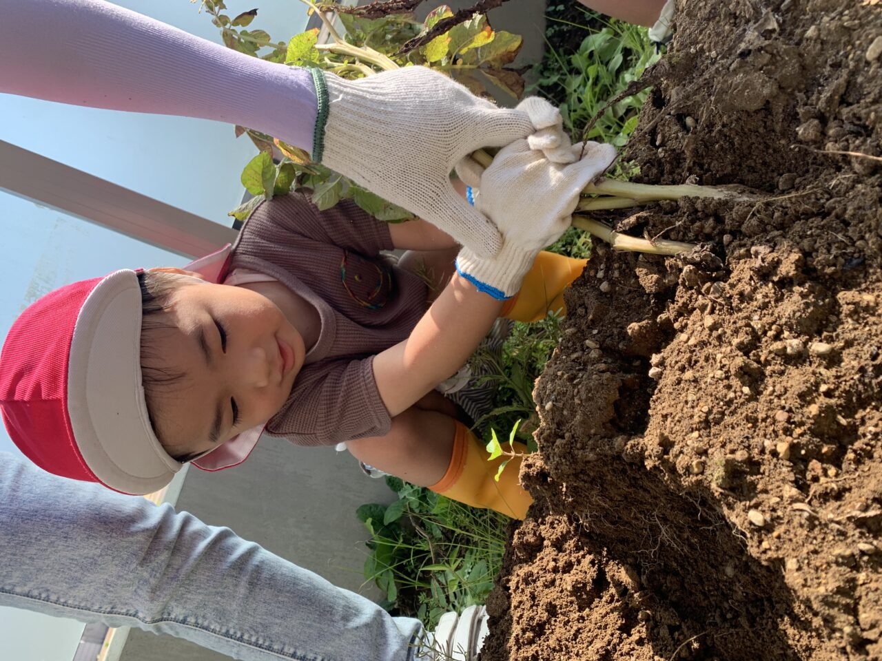 ということで、今日はお家の方々のご協力により、登園完了時間を少し早めて、涼しいうちにジャガイモ掘りを行いました???✨