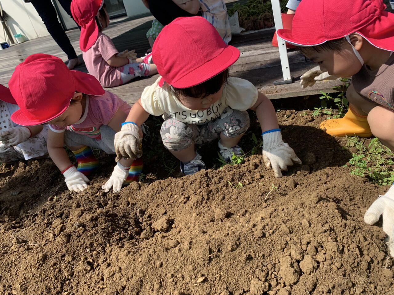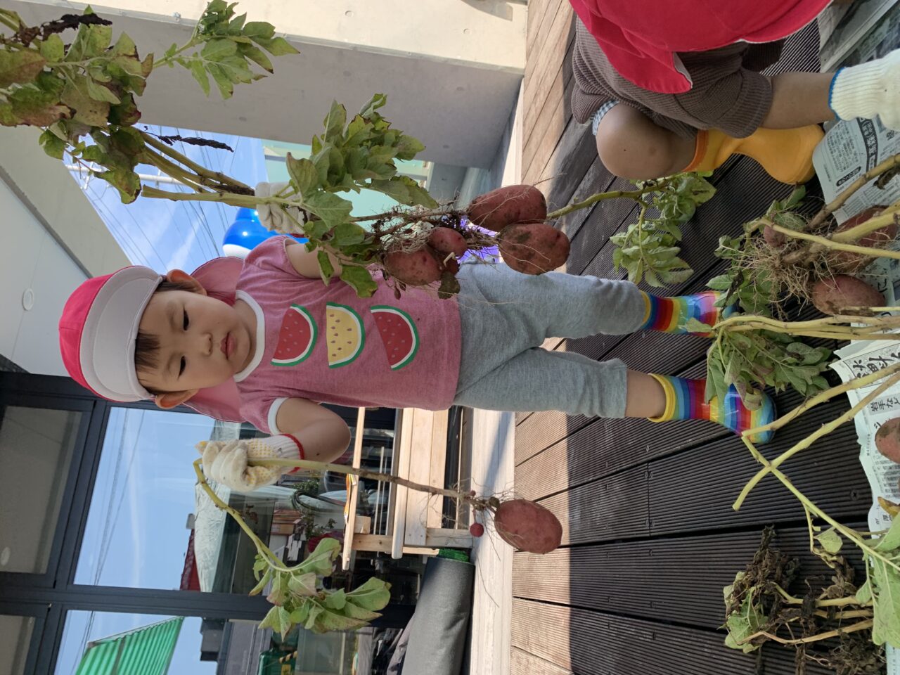 「お芋いつ食べる?」と自分たちで採ったお芋を食べるのを今から楽しみにしているようでした☺️?