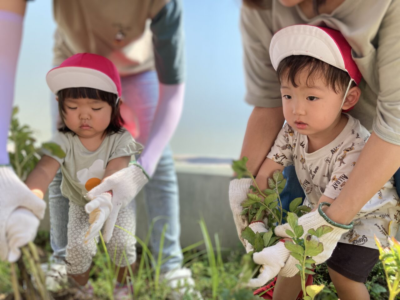 軍手をしている手を見て、私たちも可愛いなぁと思わず笑顔になります☺️❤️