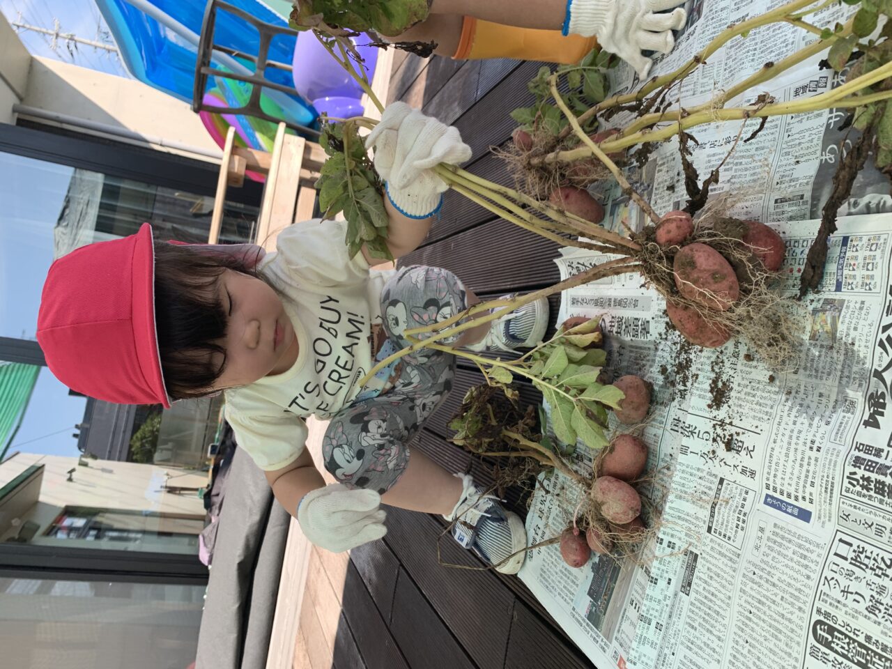 しっかりとお話を聞いてくれていた子どもたちなので、自分で抜いたジャガイモは自分で新聞紙の上に並べることも出来るんですよ??❤️