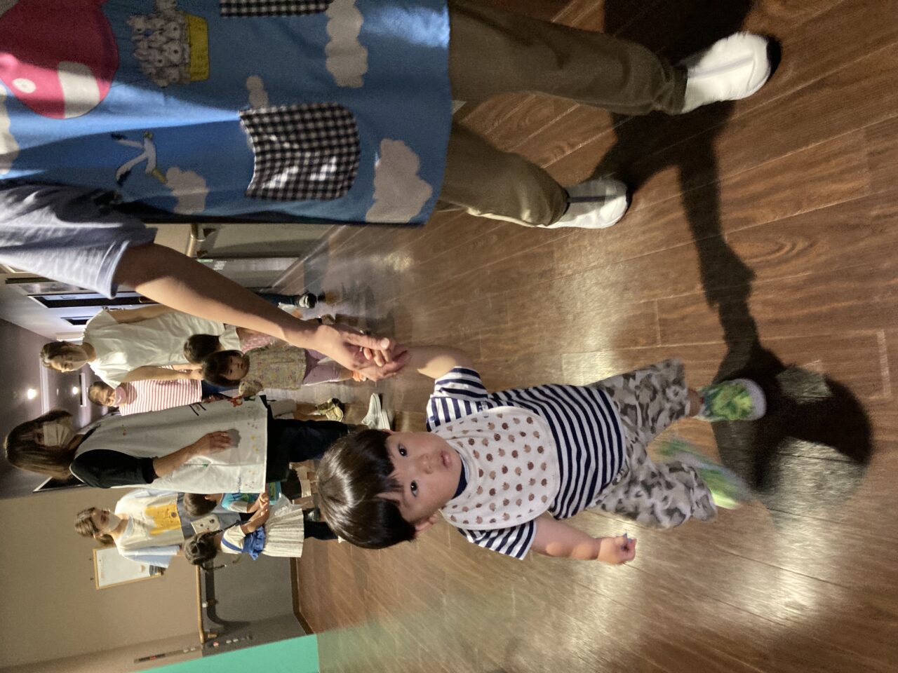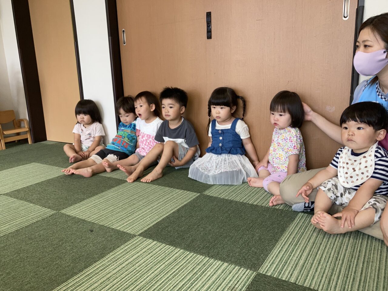 七夕と言えば、短冊?数日前に、保護者の方と一緒に願い事を書いてきてもらい子ども達に笹の葉に飾ってもらいました?