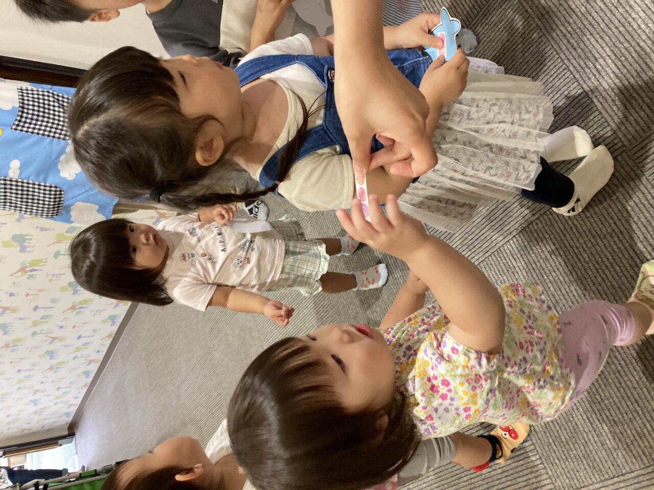 牛さんに神様、織姫、彦星をみんなで探して、笹の葉へ飾る様子をみていると、願いも叶いそうですね😊✨