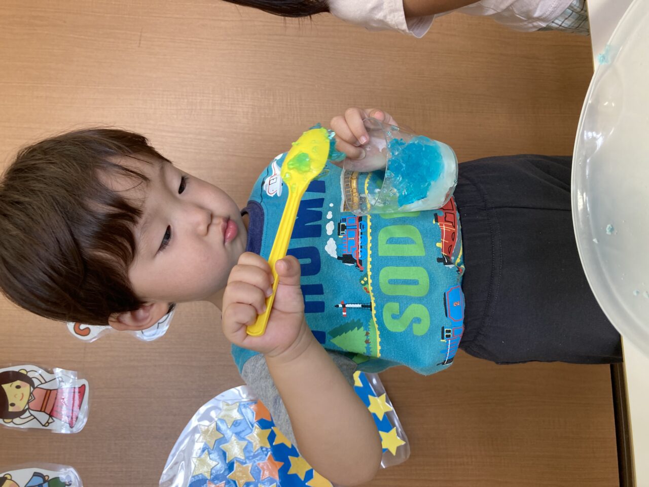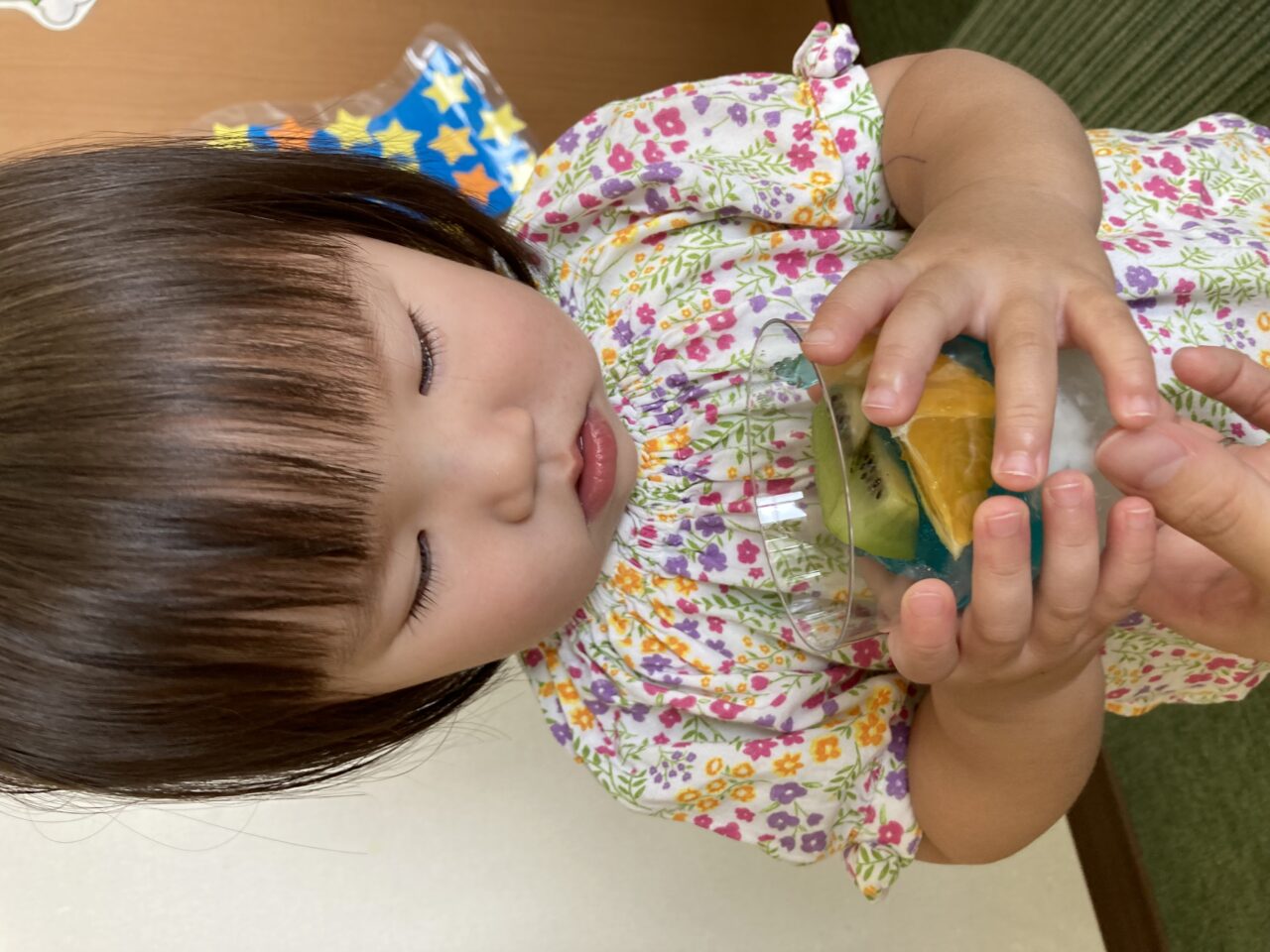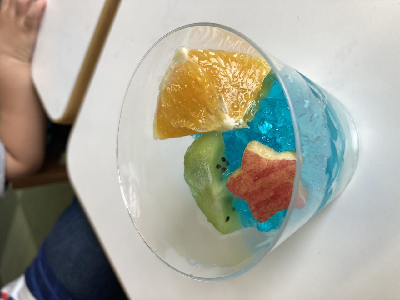 前半で作ってもらったゼリーをそれぞれ自分で盛り付けをしました?