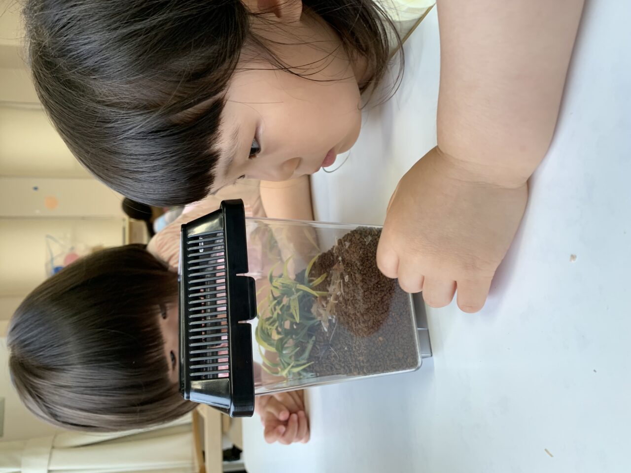 登園すると「スズムシみる〜?」とみんながお話ししています☺️❤️