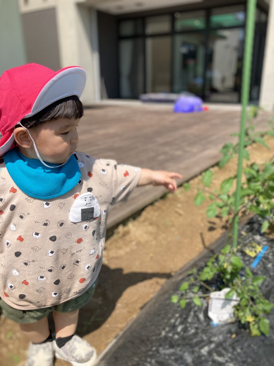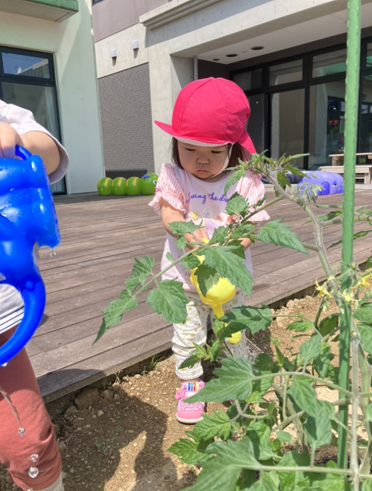 水やりをした後のトマトとジャガイモも見る子ども達の後ろ姿を見て、私もトトロを思い出していました🌱