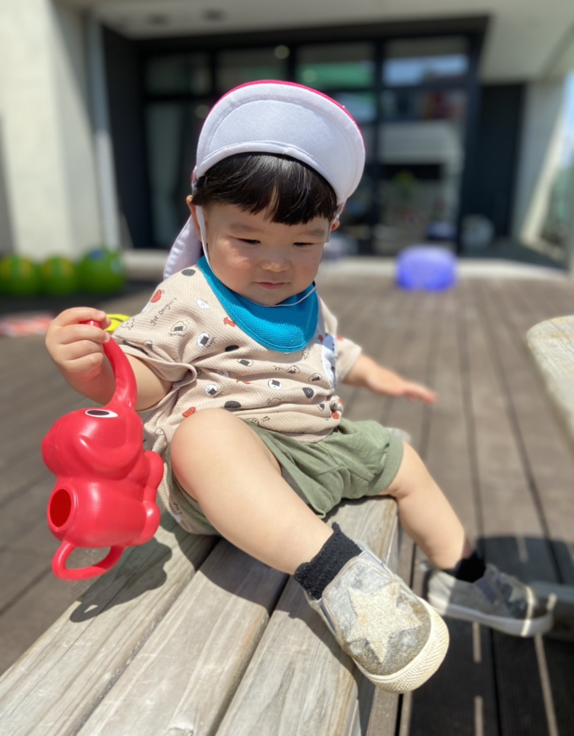 今日は天気が良かったので、テラスに出てみんなで水やりをしましたよ♪