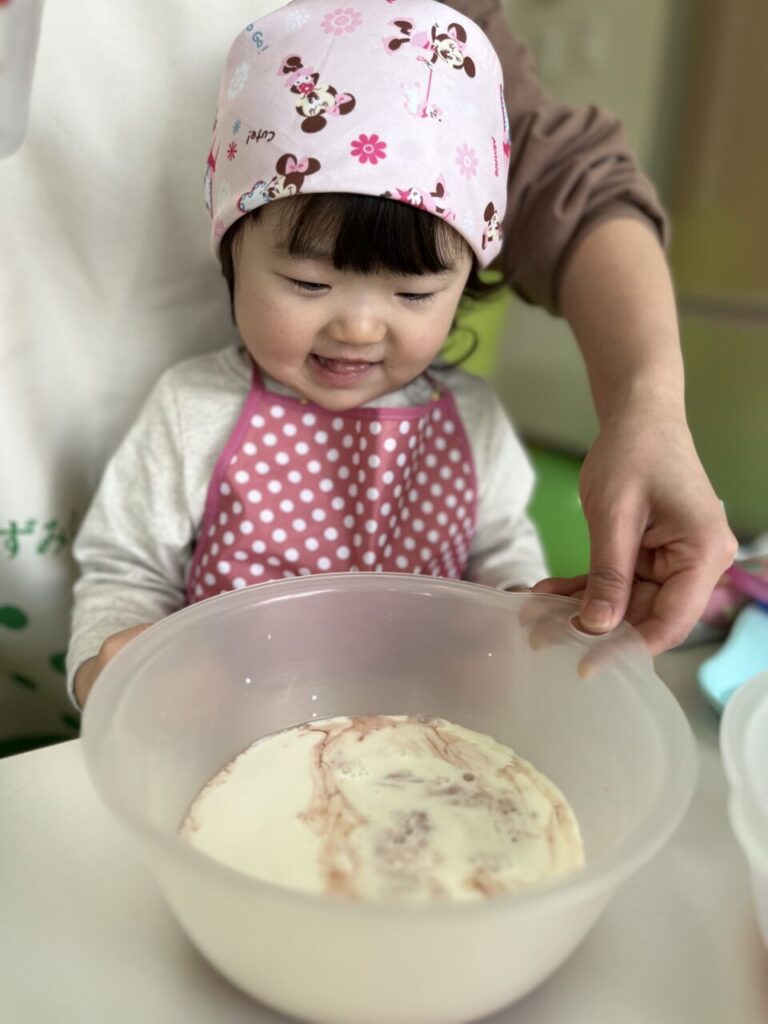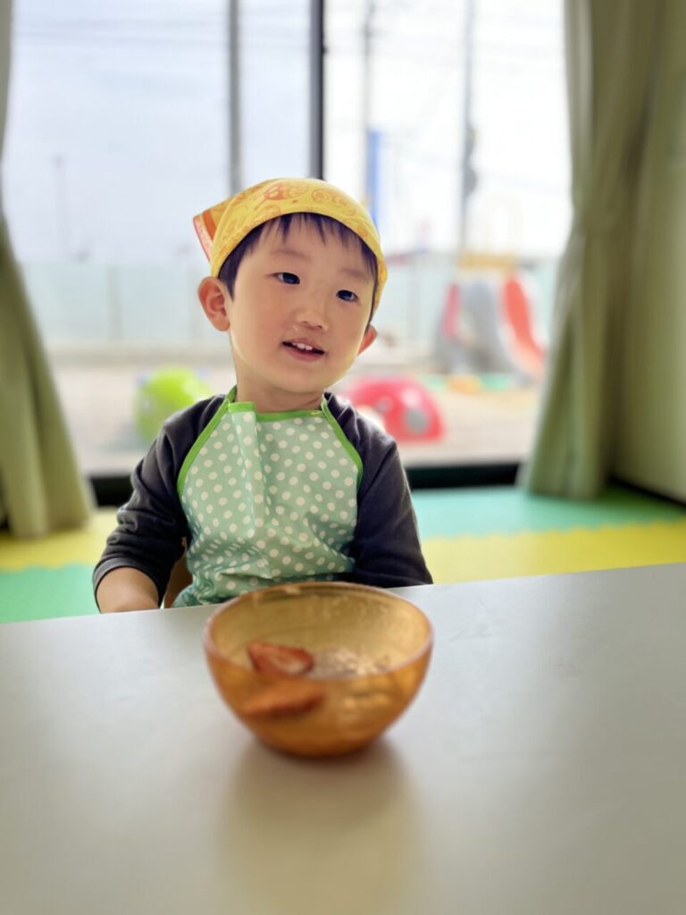 朝の会で、「今日は、、、、クッキングをします☺️」