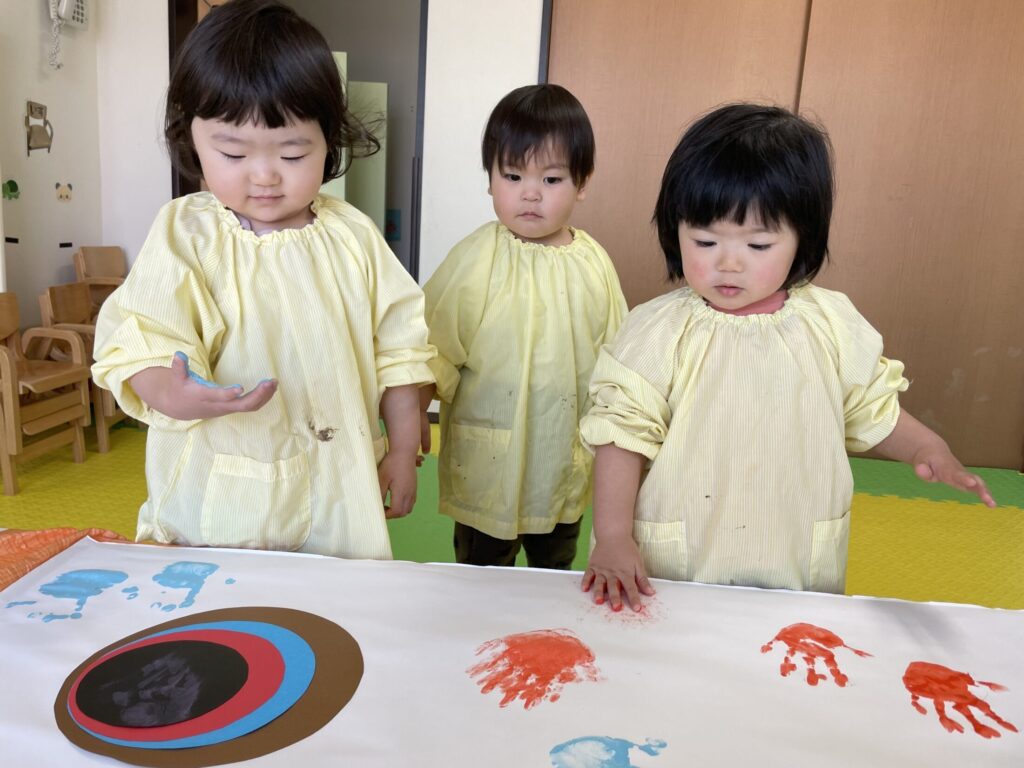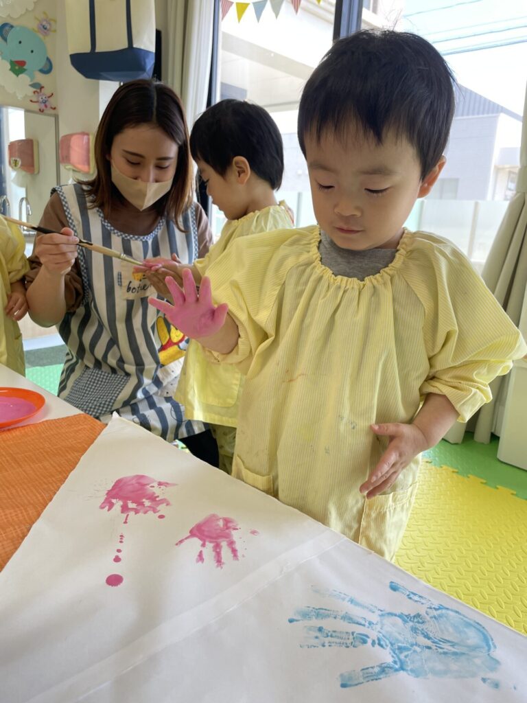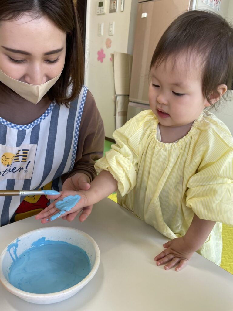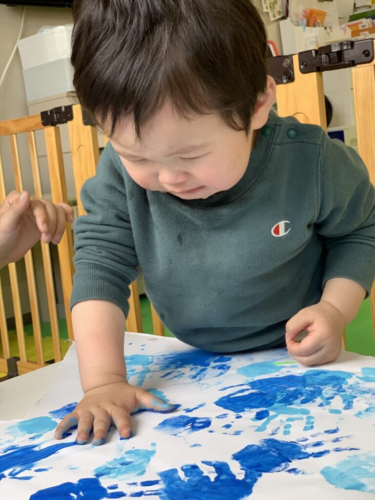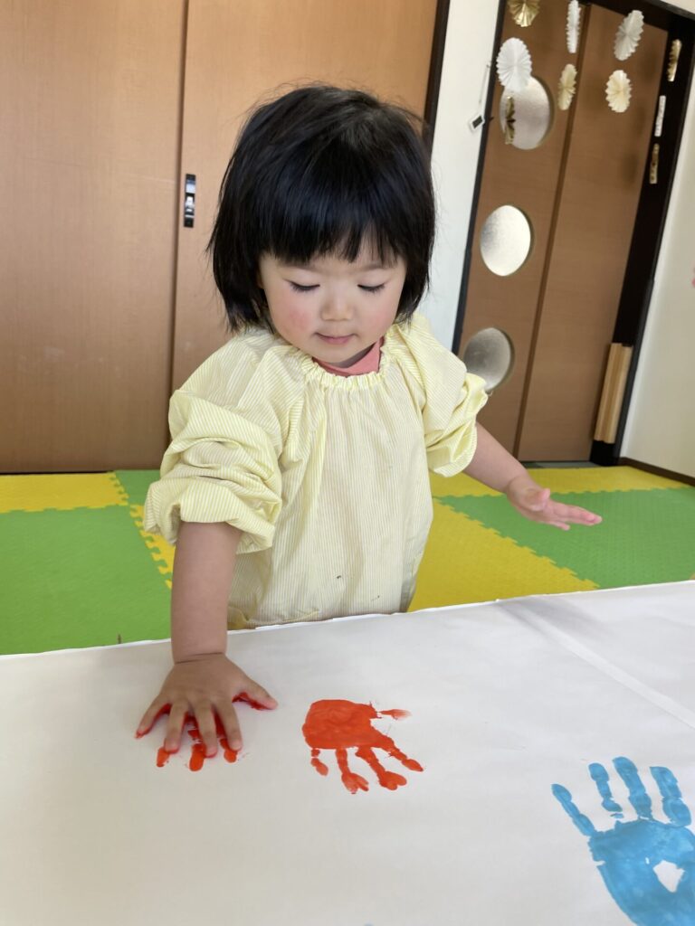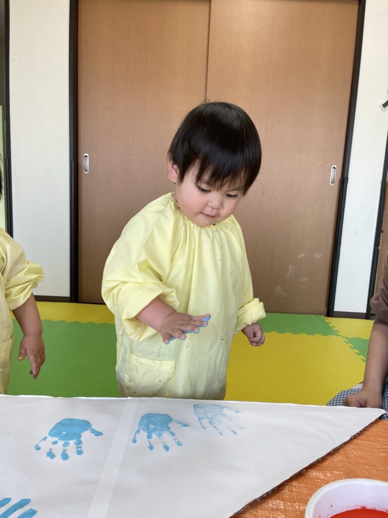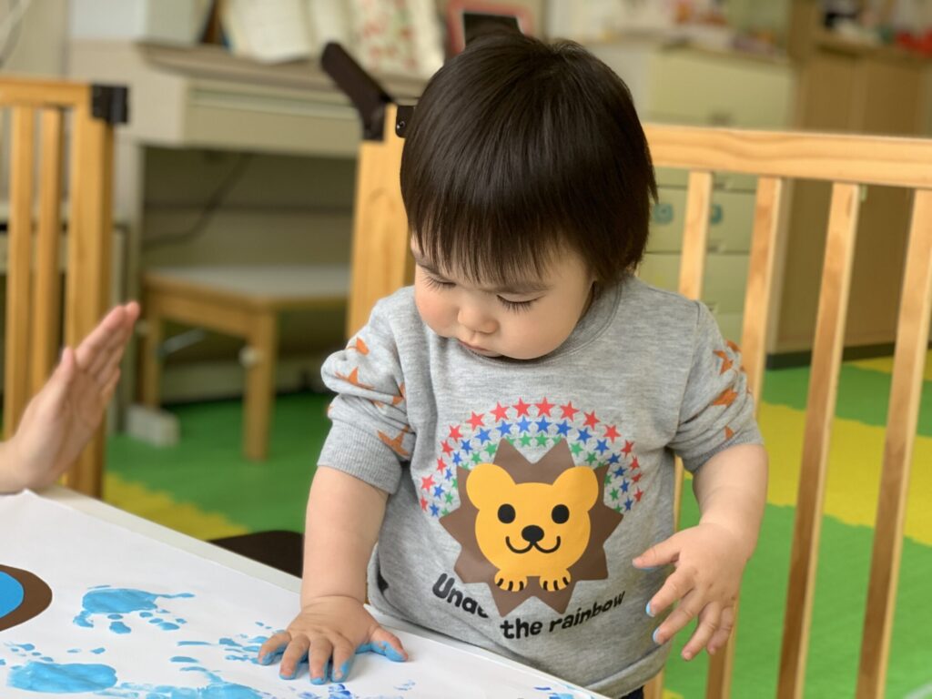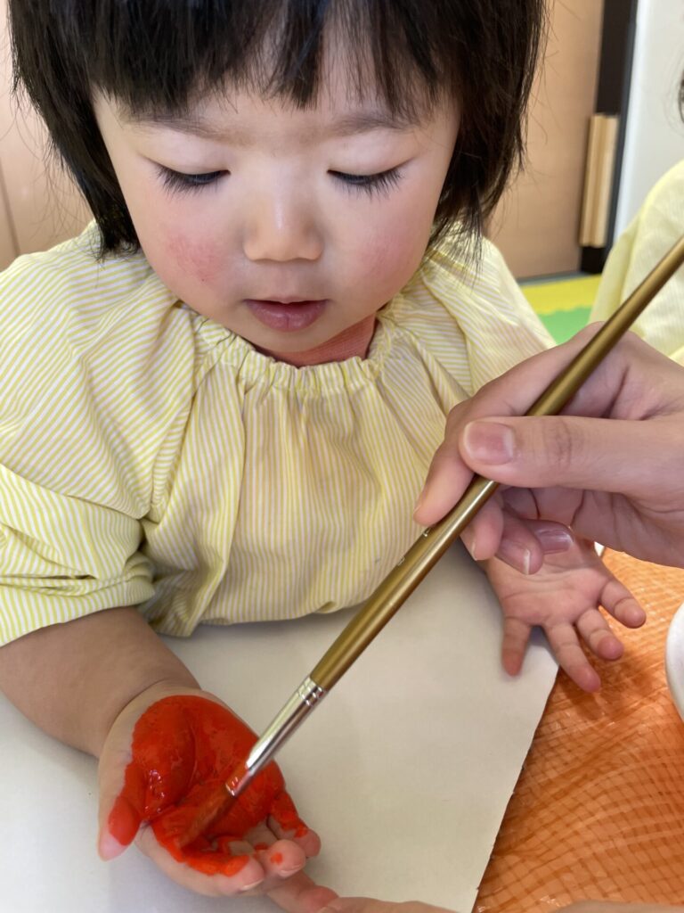 1歳のお友達も❤️おててに絵の具をペタペタ?