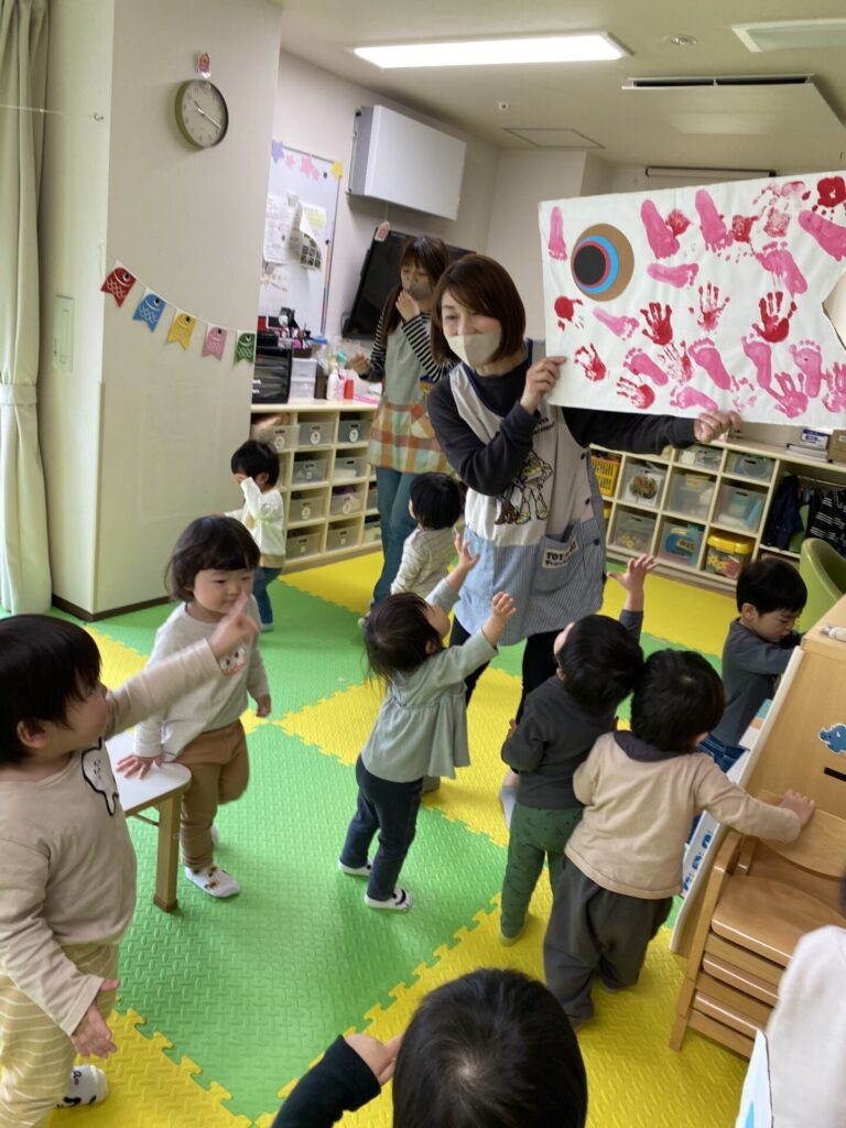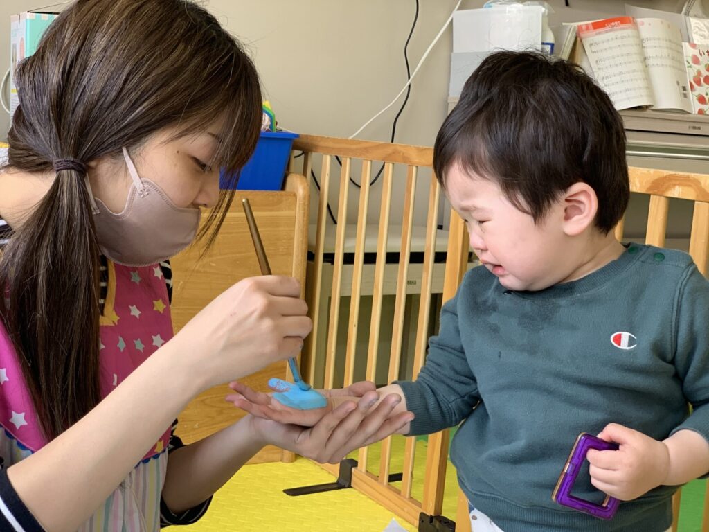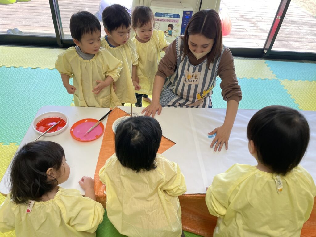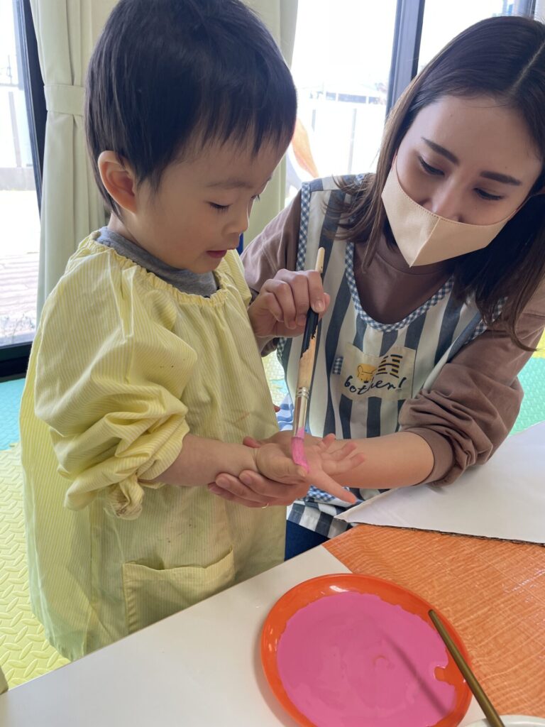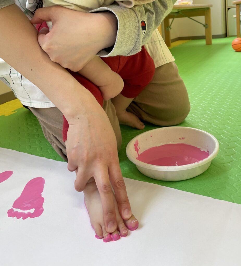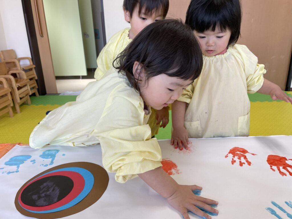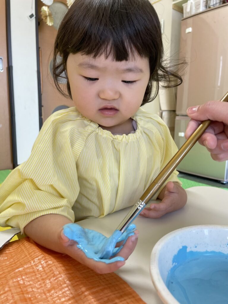 1歳のお友達も❤️おててに絵の具をペタペタ?