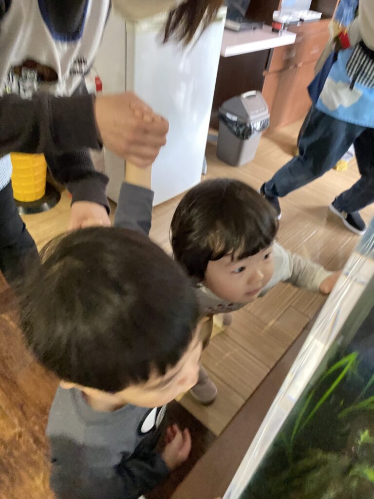 ここにいるかも‼︎と水槽を覗き込む子どもたち?