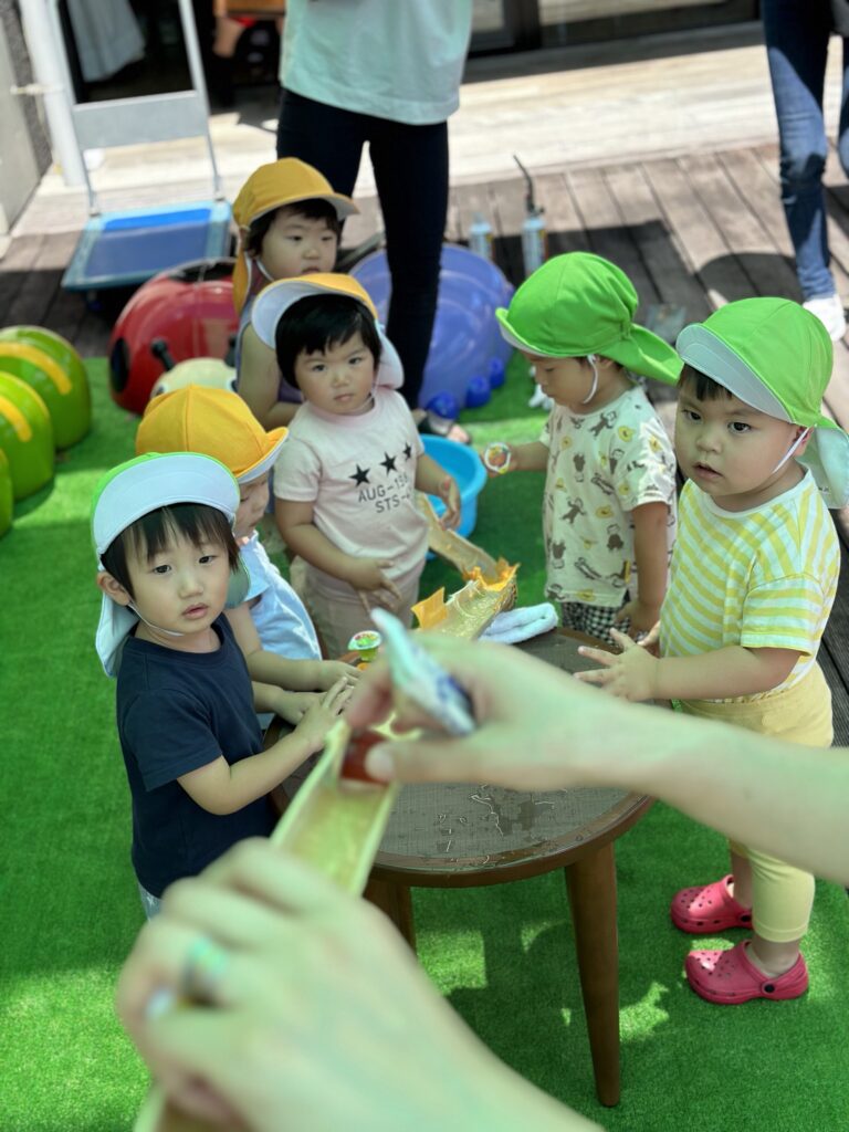 あまりの暑さで、テラスで食べることはできませんでしたが、夏らしい体験ができ、また一つきらきらっ子達の思い出が増えました☀️?️?