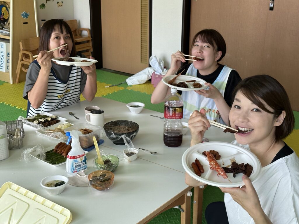 みんなは、一富士さんが用意してくれた、おにぎりやそうめん、ウインナーに、BBQのお肉とたくさん食べてくれました??