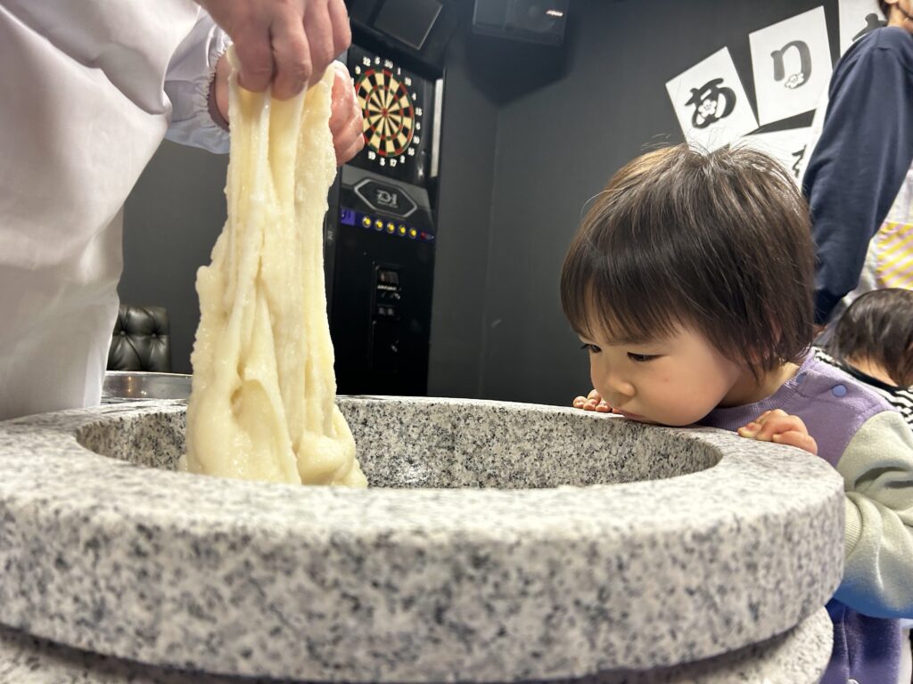 びよ〜〜〜んと伸びるお餅に釘付け!