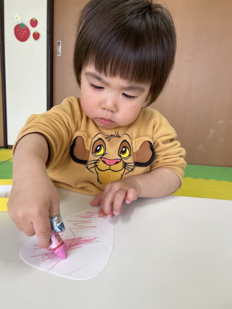 まずは…クレヨン🖍️で赤とピンクでぐるぐる🌀