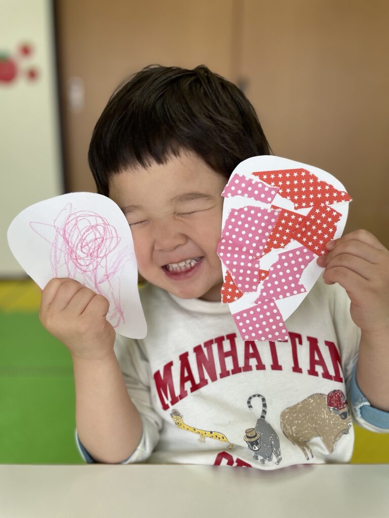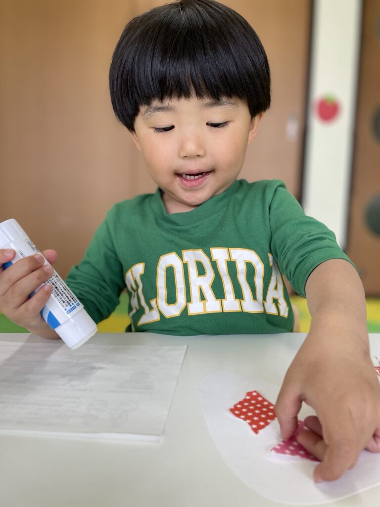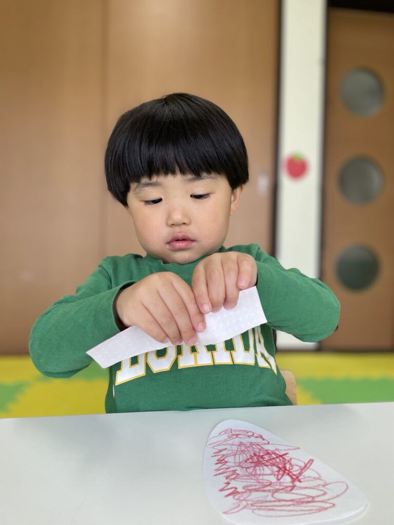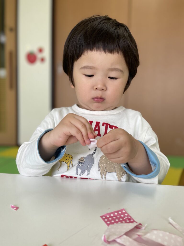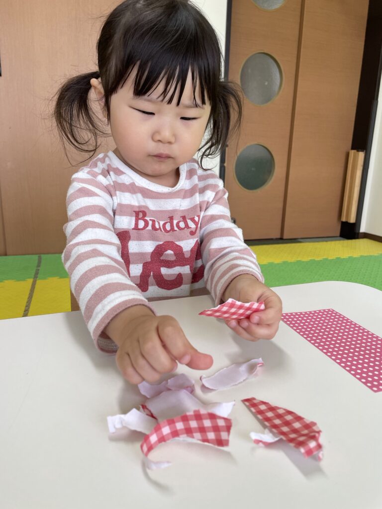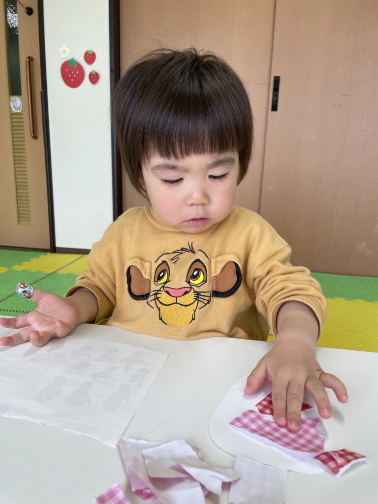 自分でちぎった折り紙をのり付けして自由に貼ります✨