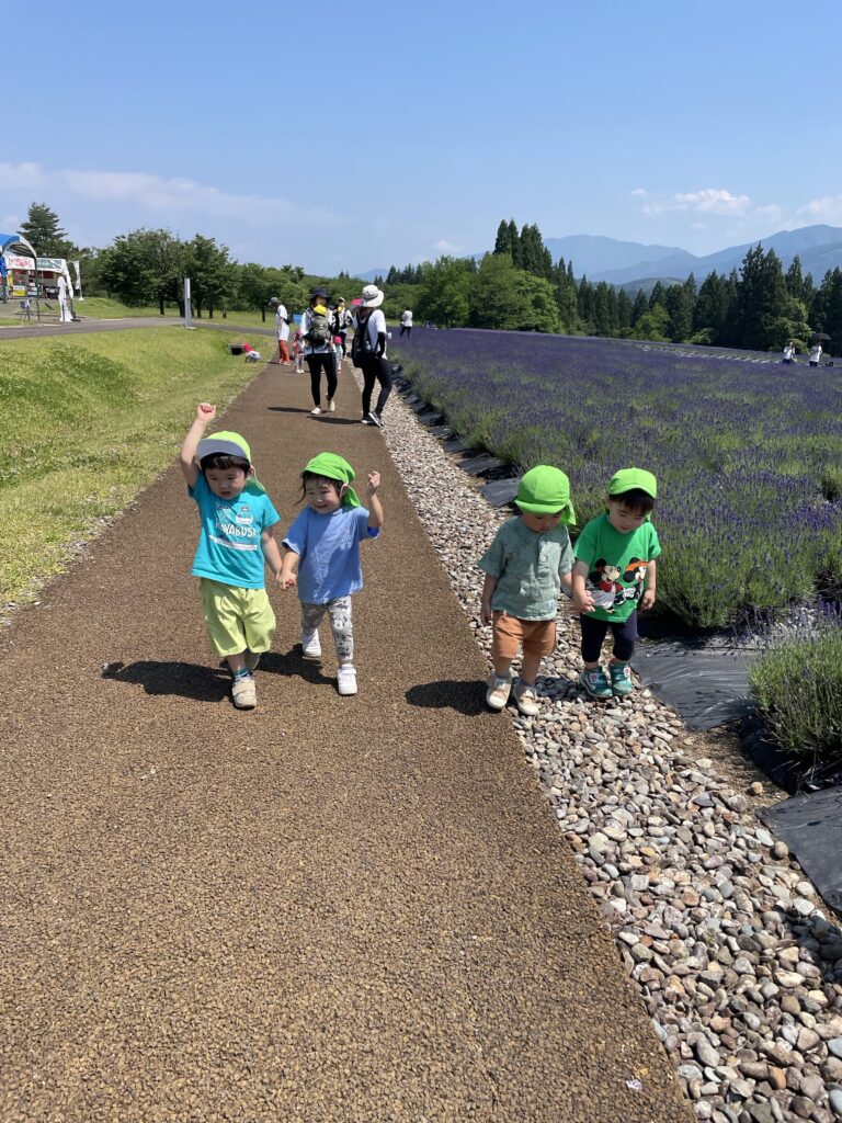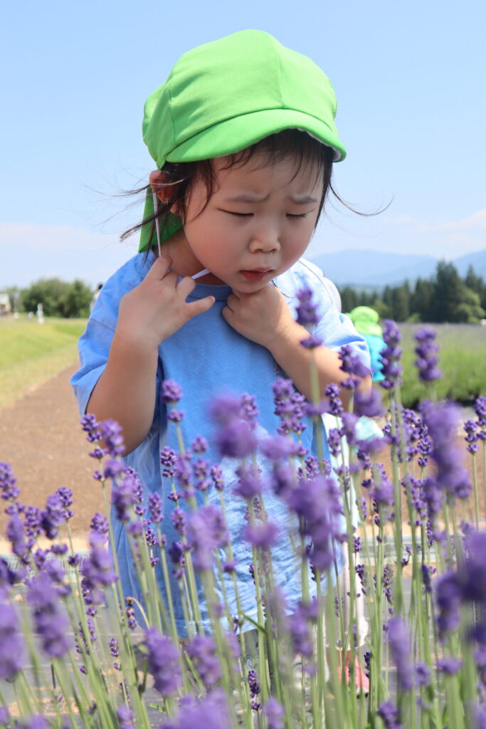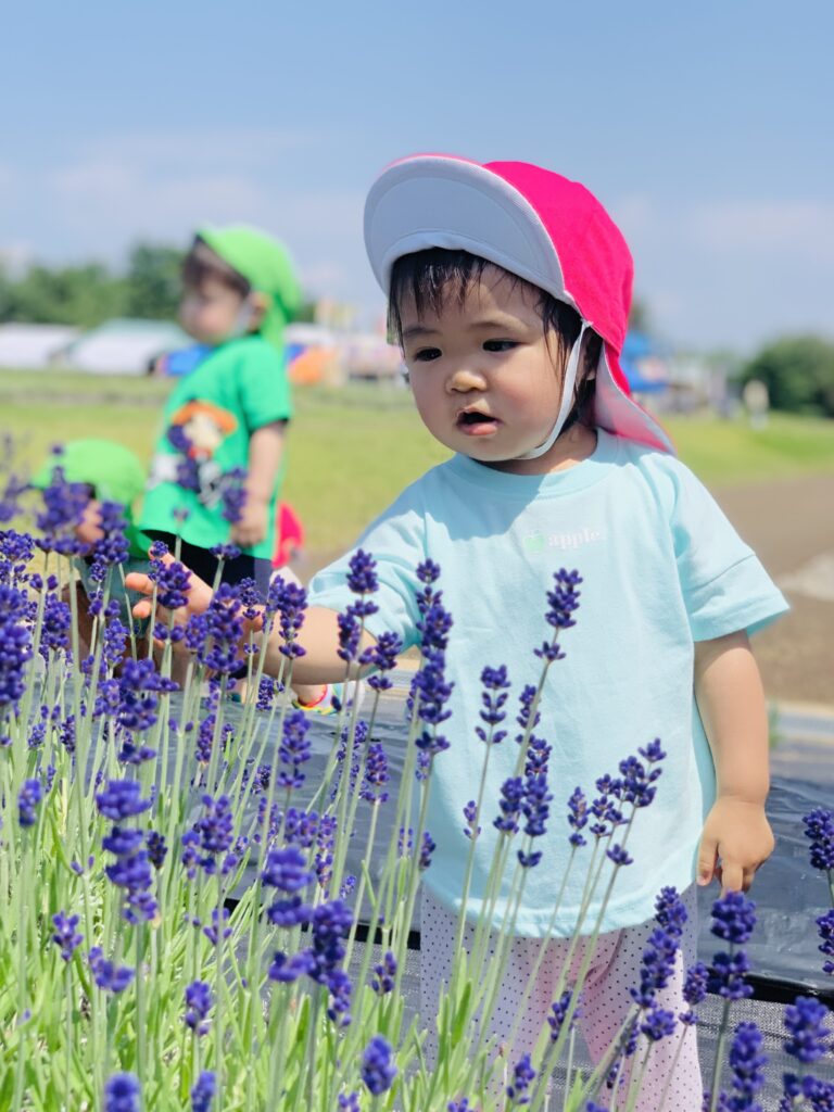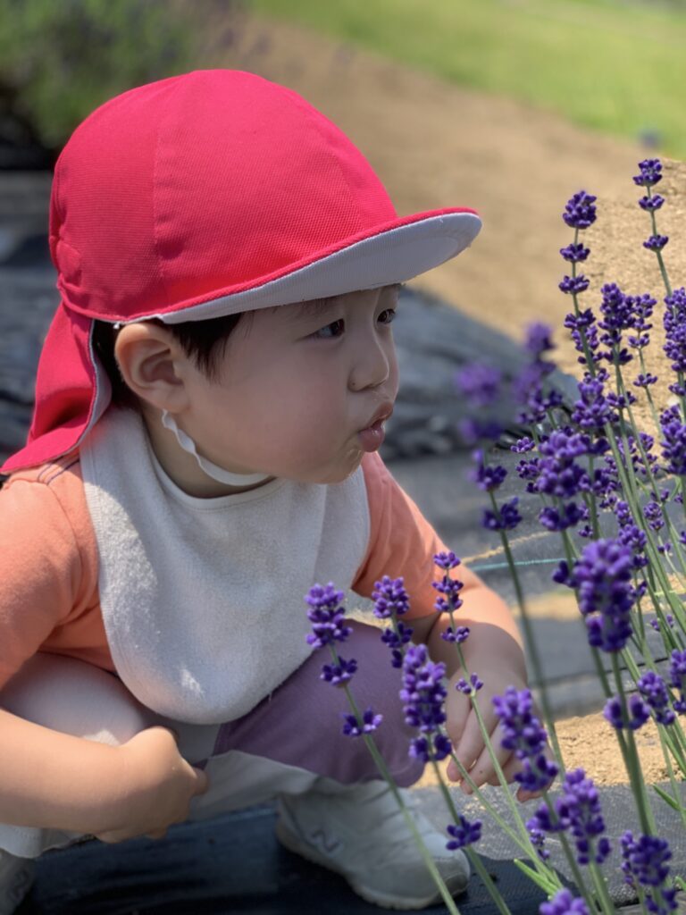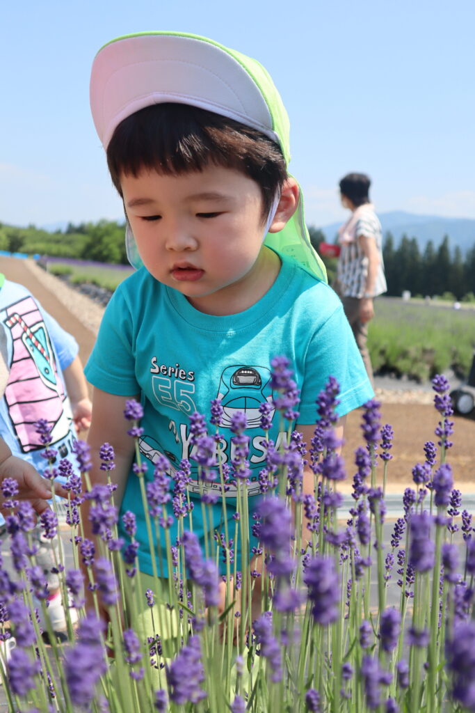 ラベンダーに興味津々の子ども達は触ったり、匂いを嗅いだりしていました😊