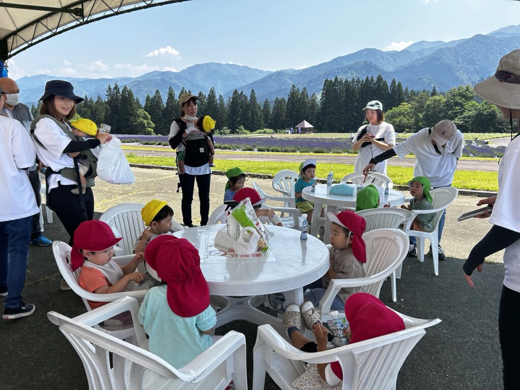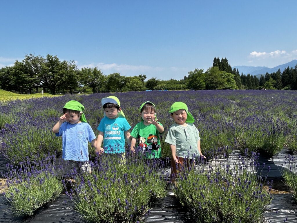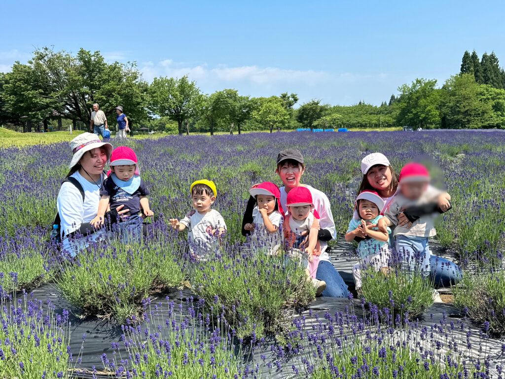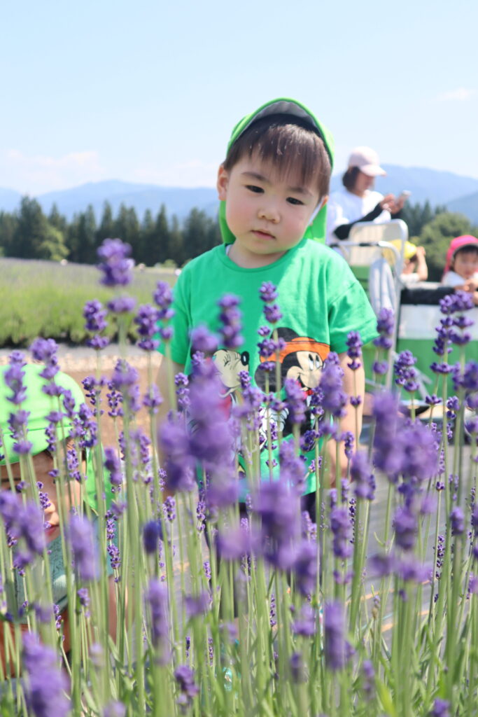 ラベンダーに興味津々の子ども達は触ったり、匂いを嗅いだりしていました😊