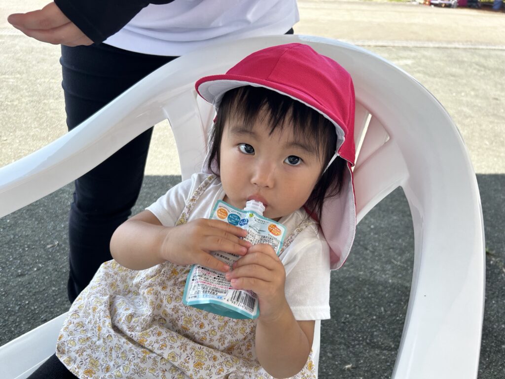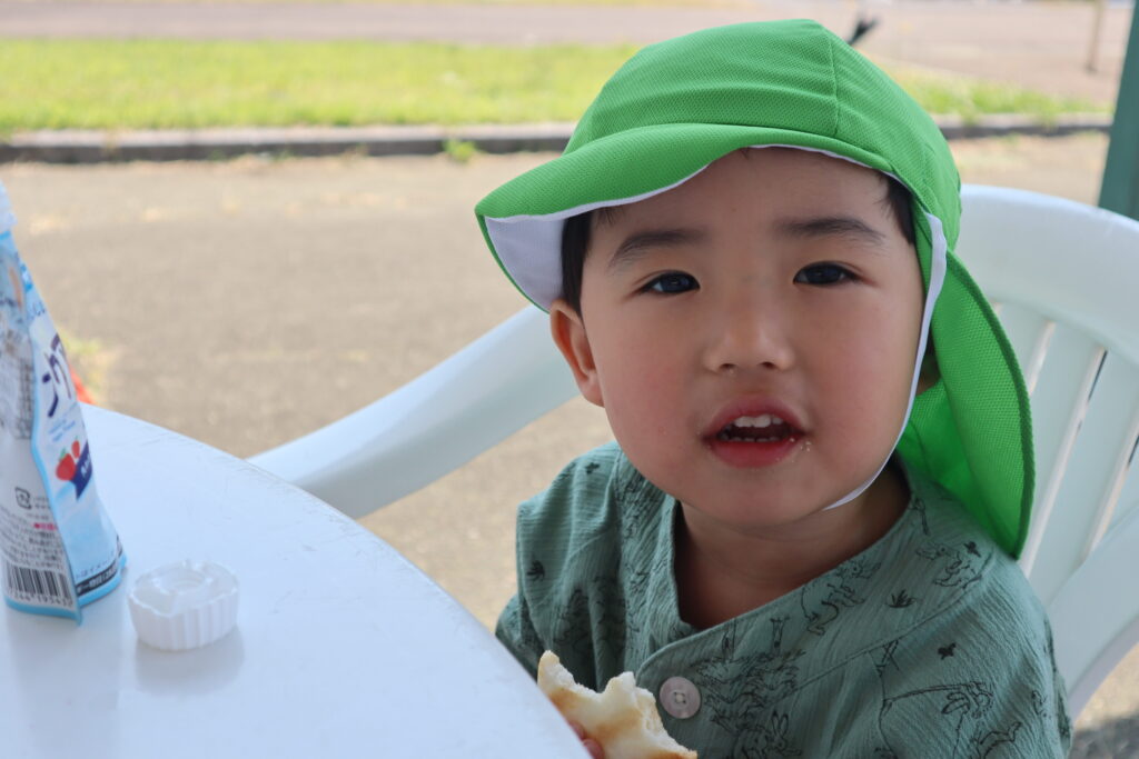 お外で食べるおやつは美味しいね😋