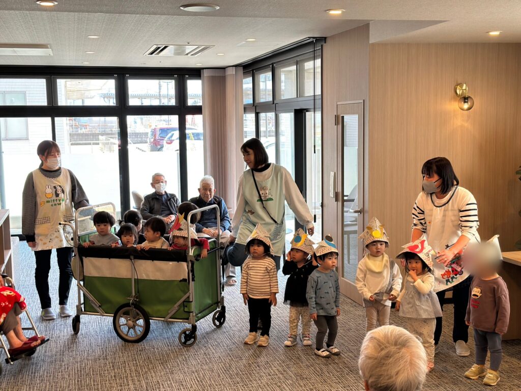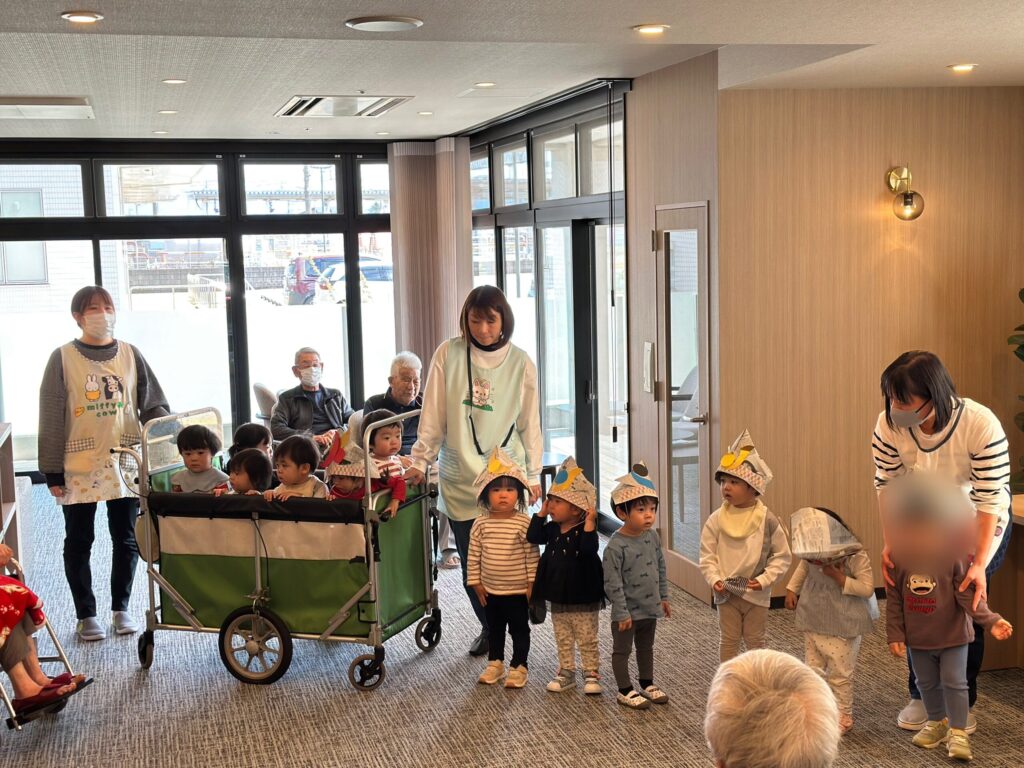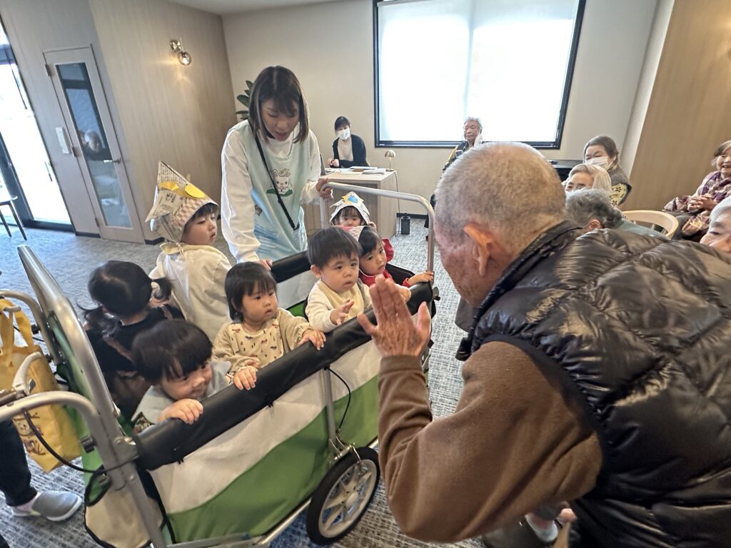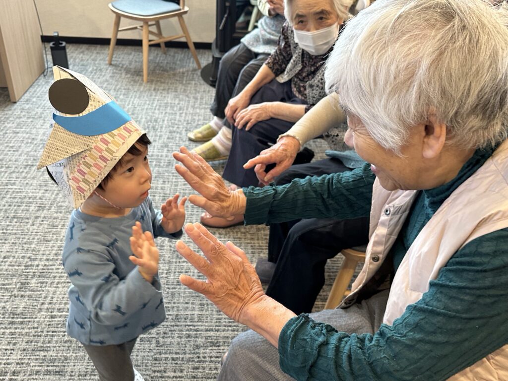 無事に歌い終わると安心したのか、利用者さんとも笑顔でタッチして交流してきましたよ🥰
