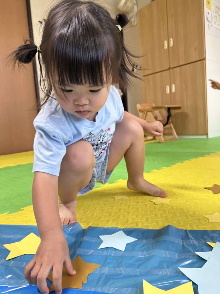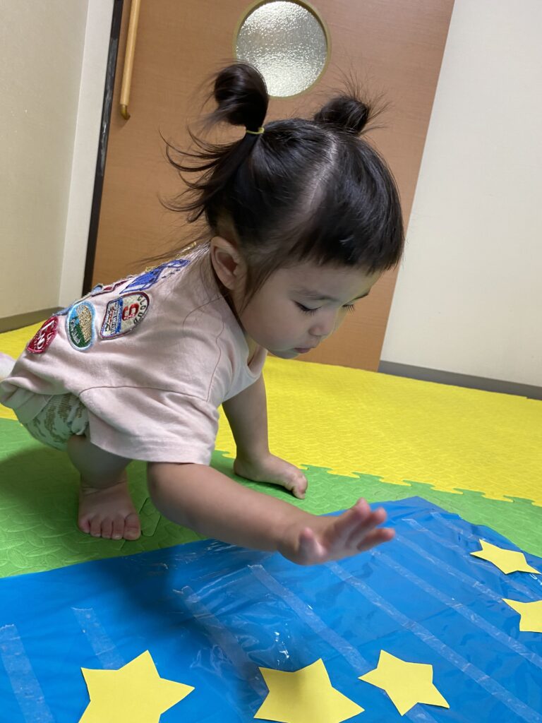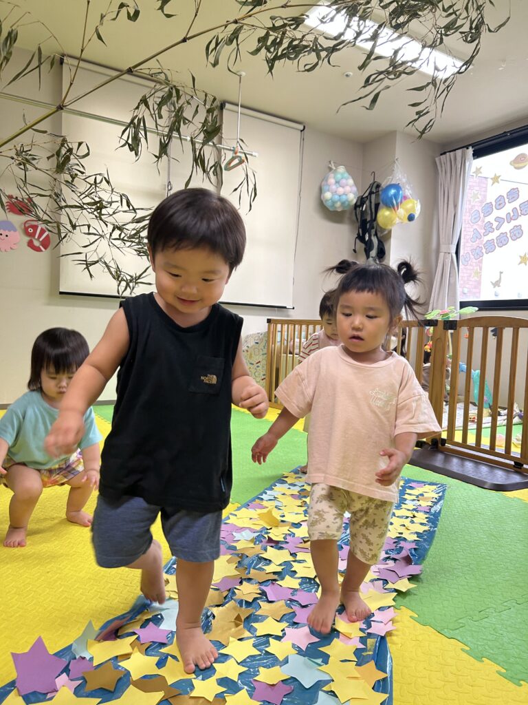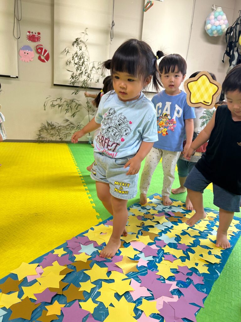 「わーー😍✨」とお星さまの上を確認するように踏みしめて歩く子ども達…