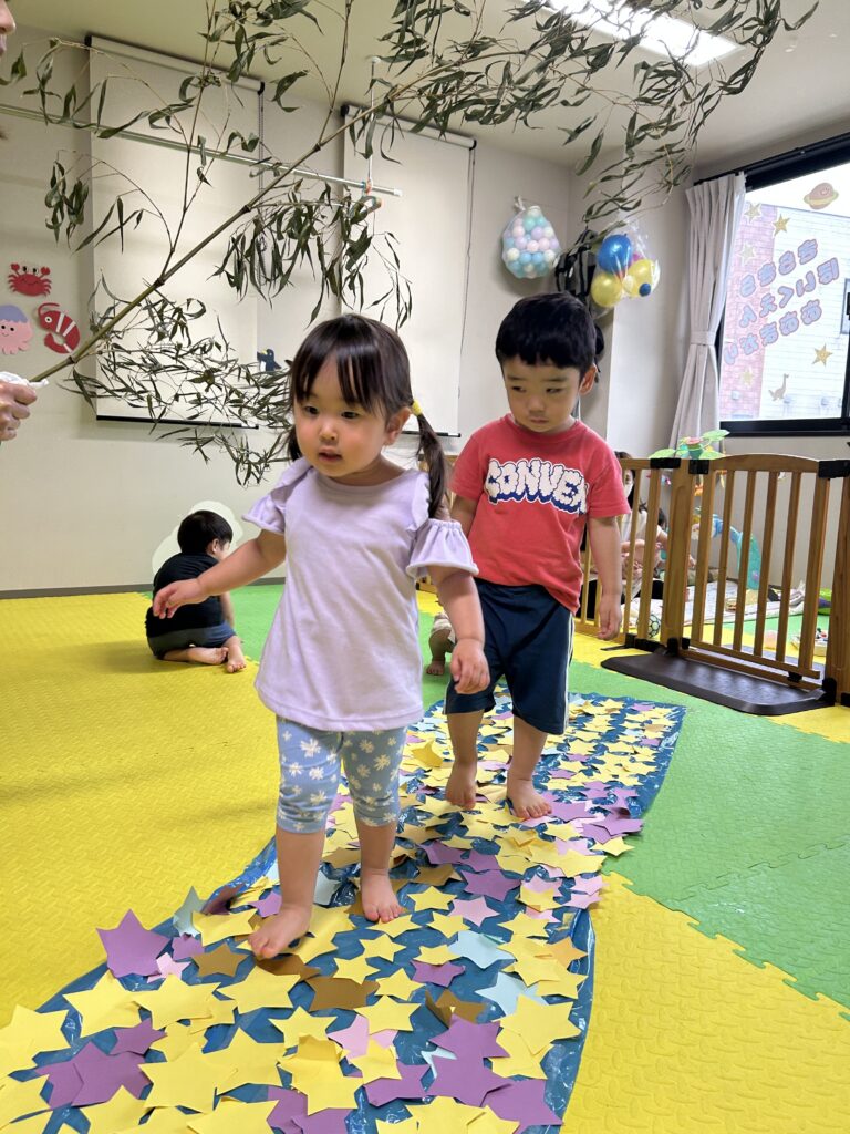 初めは“たなばたさま”と“きらきら星”を歌って踊って楽しみました😌