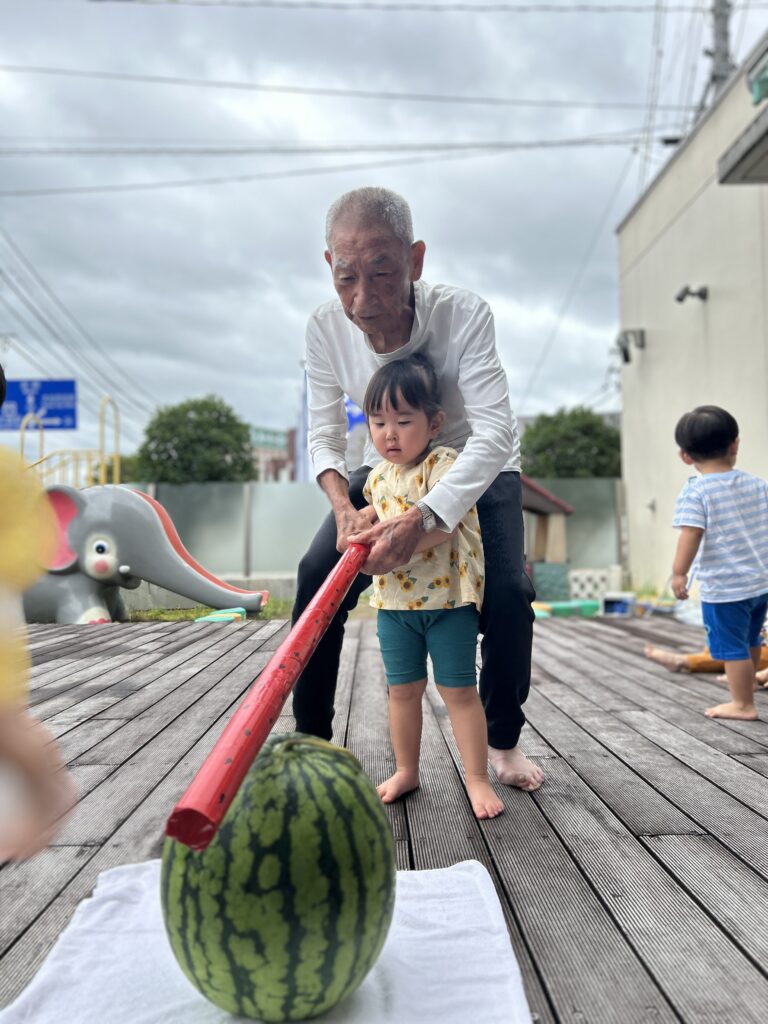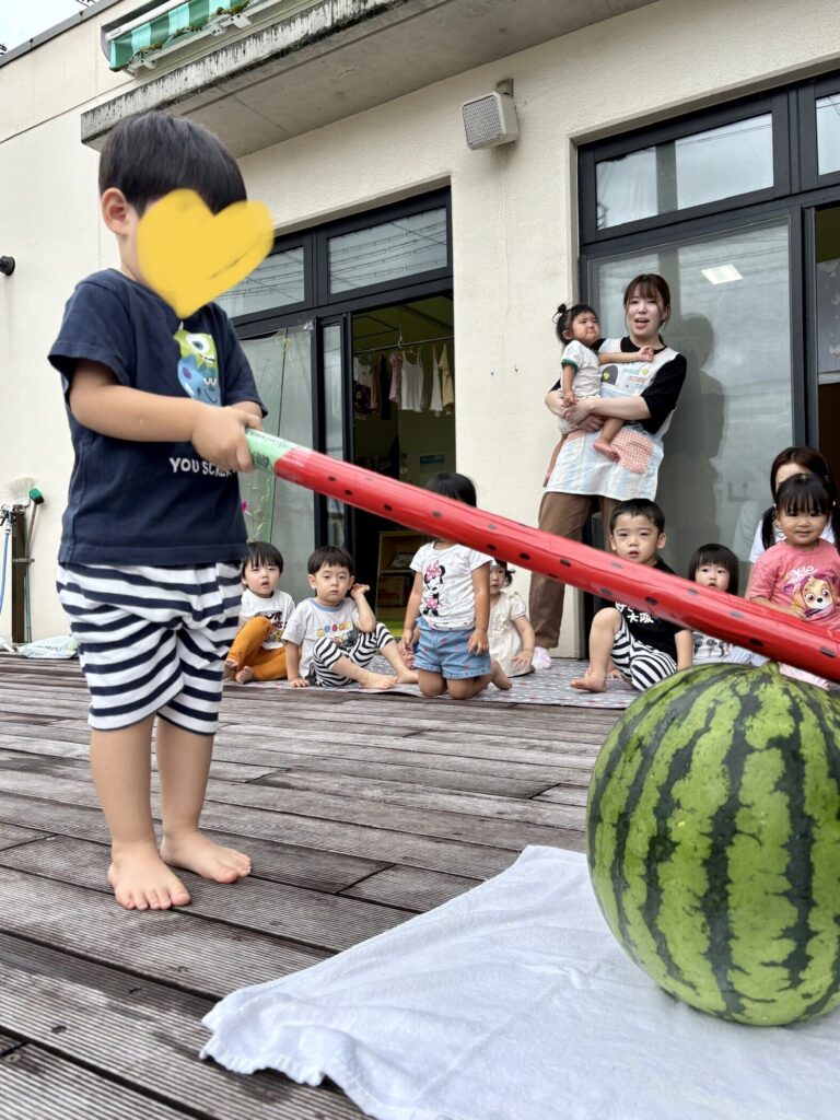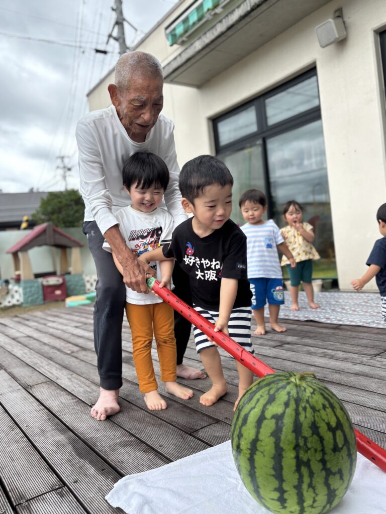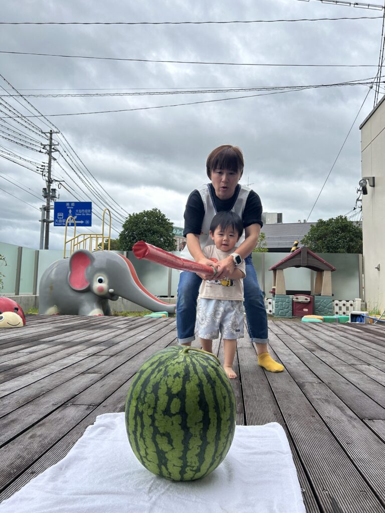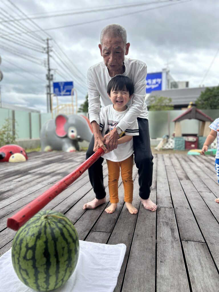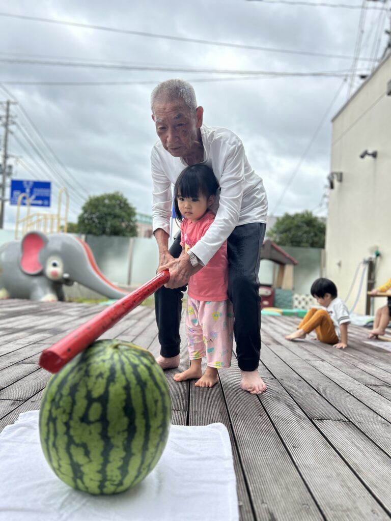 利用者さんとも一緒にスイカ割りを楽しみましたよ😊