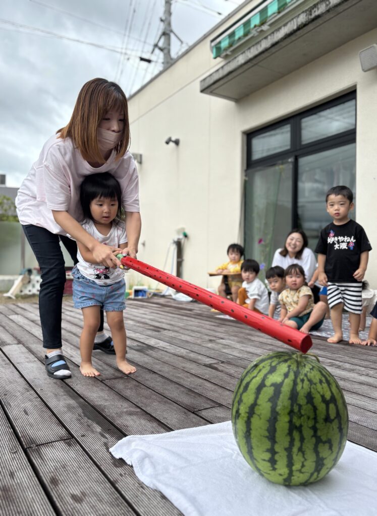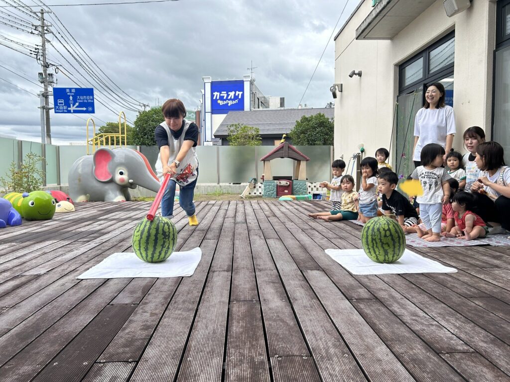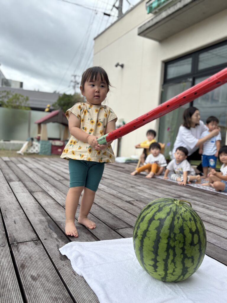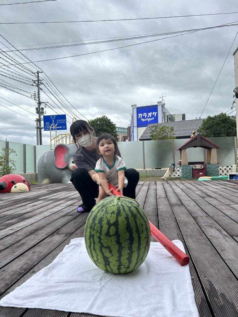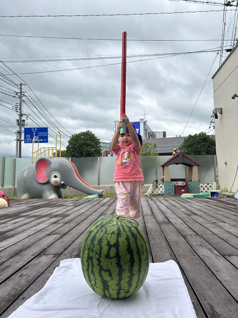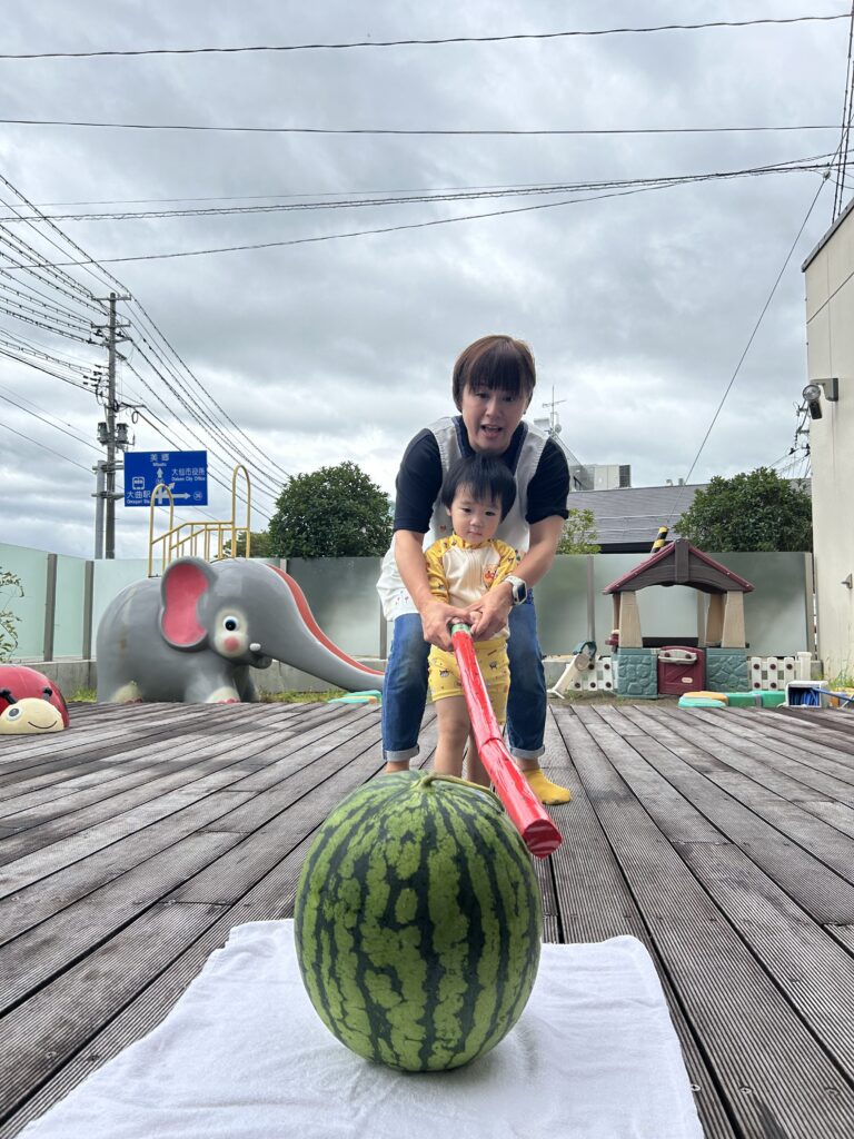 利用者さんとも一緒にスイカ割りを楽しみましたよ😊