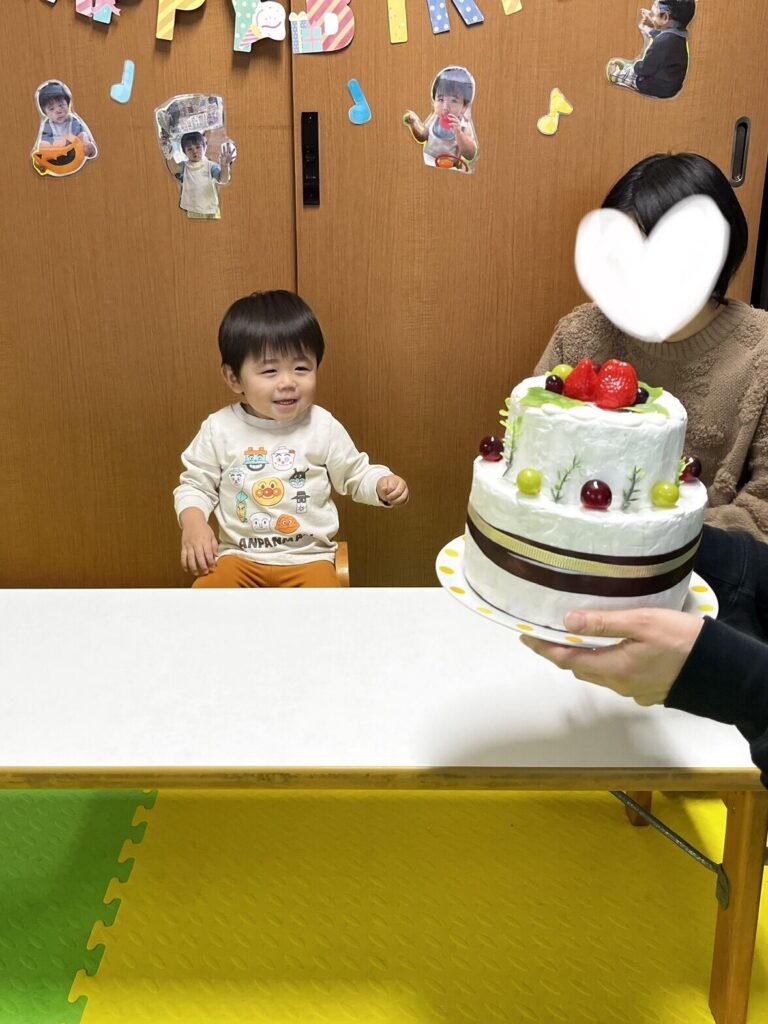 お歌が終わるとピアノの音色に合わせてケーキが登場です🎂