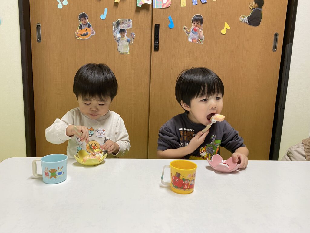 おやつタイムではお当番さんと一緒に歌ってくれました!