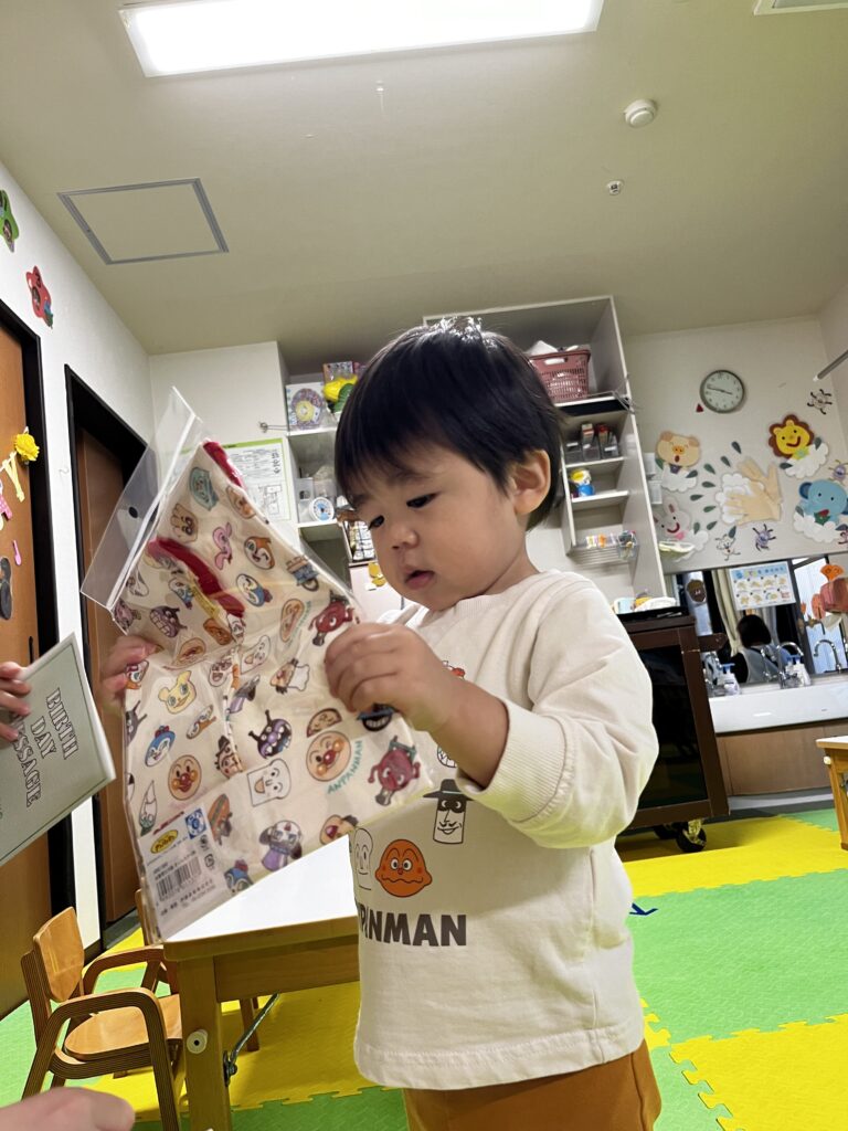 大好きなアンパンマンの袋におめめがきらきら👀✨