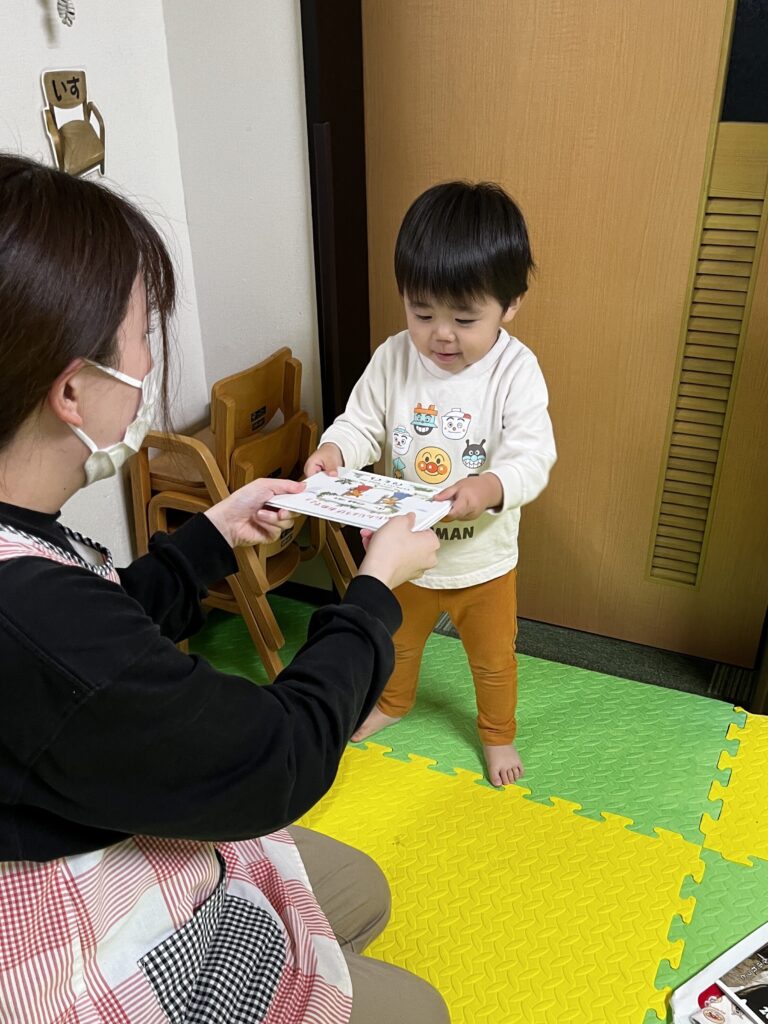 お話がどんどん上手になって、「せんせー!」と保育士の肩をぽんぽんとして色んなことをお話してくれるね☺️