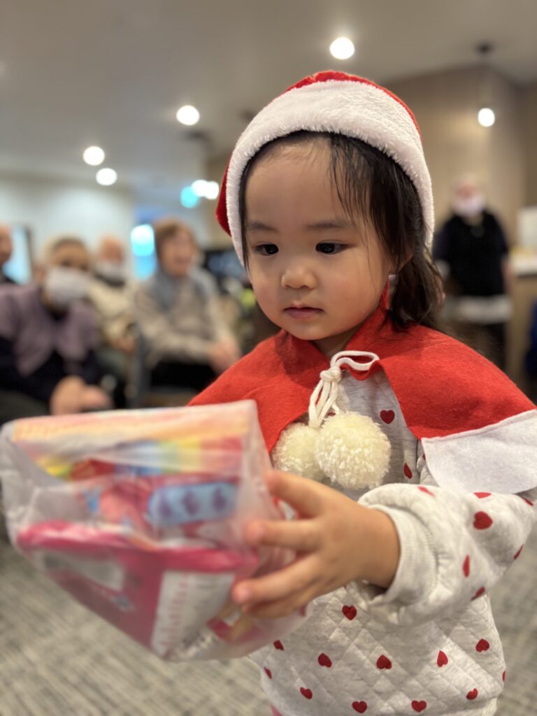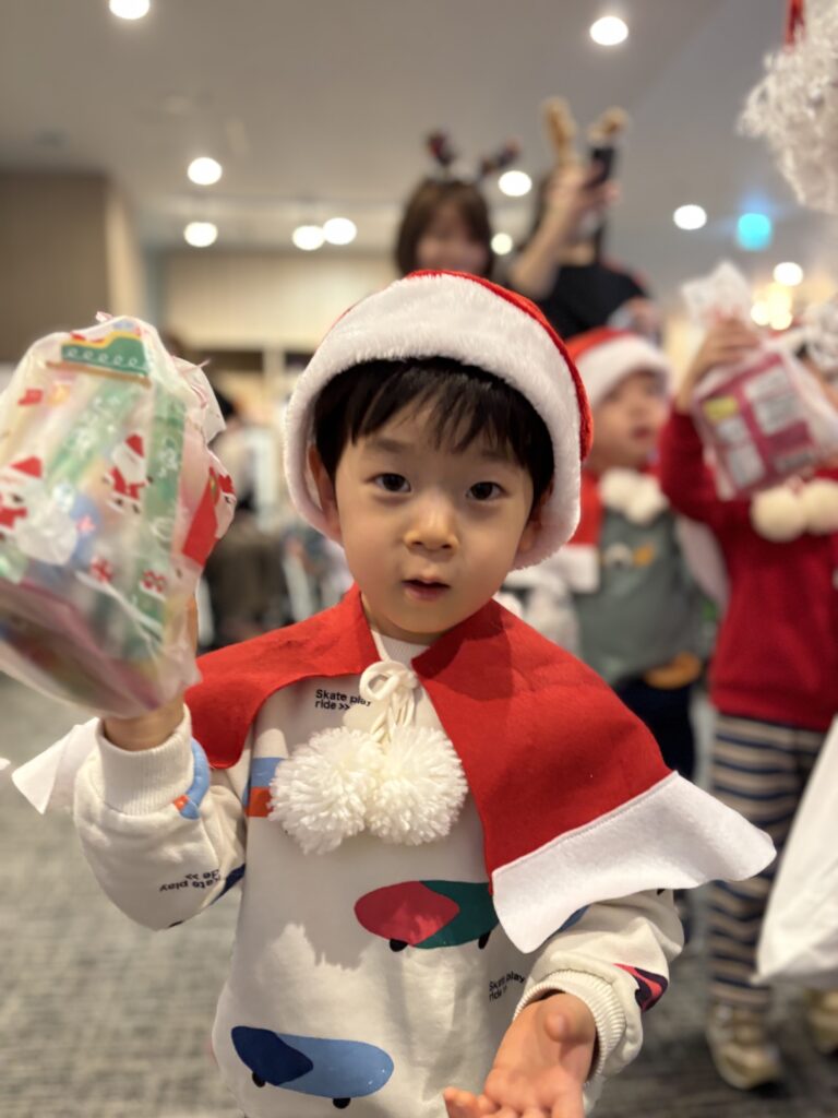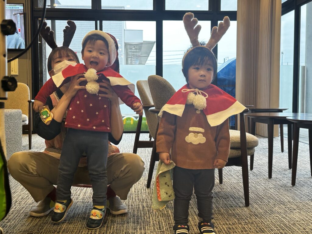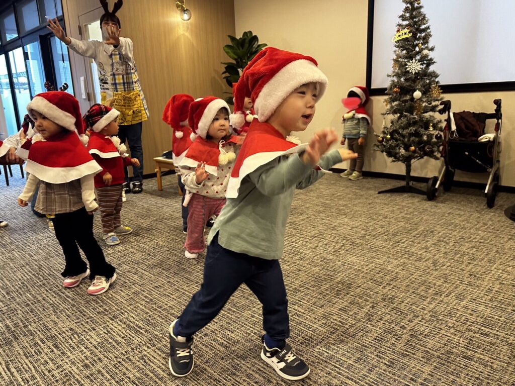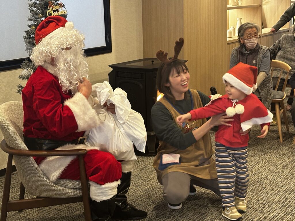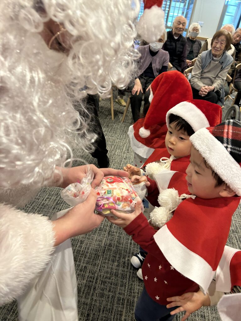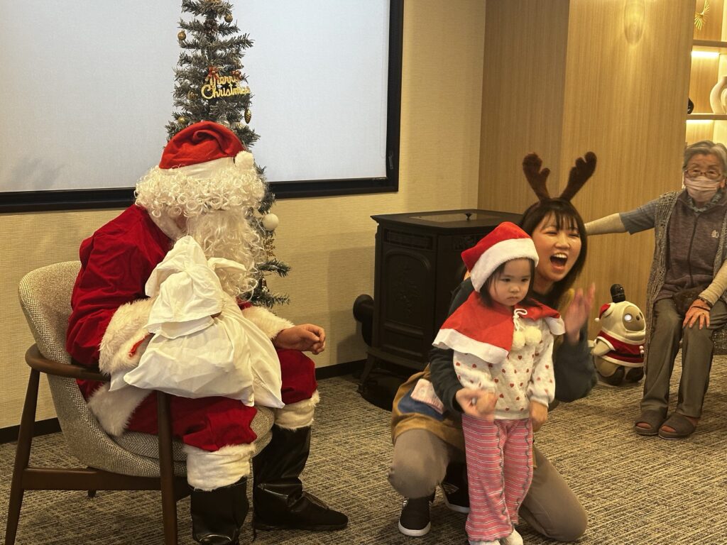 サンタさんが来てくれてドキドキの子どもたち🩷