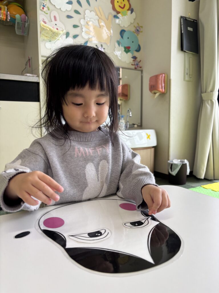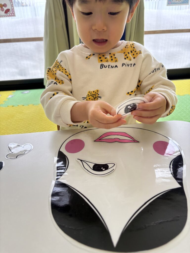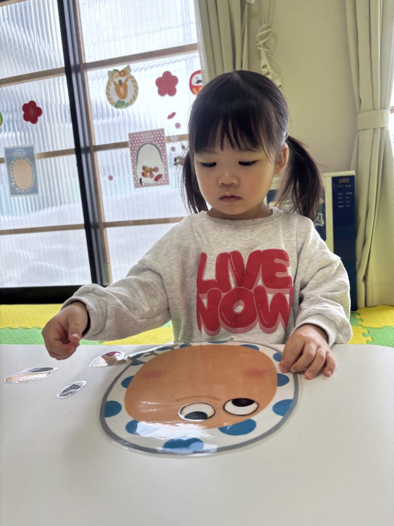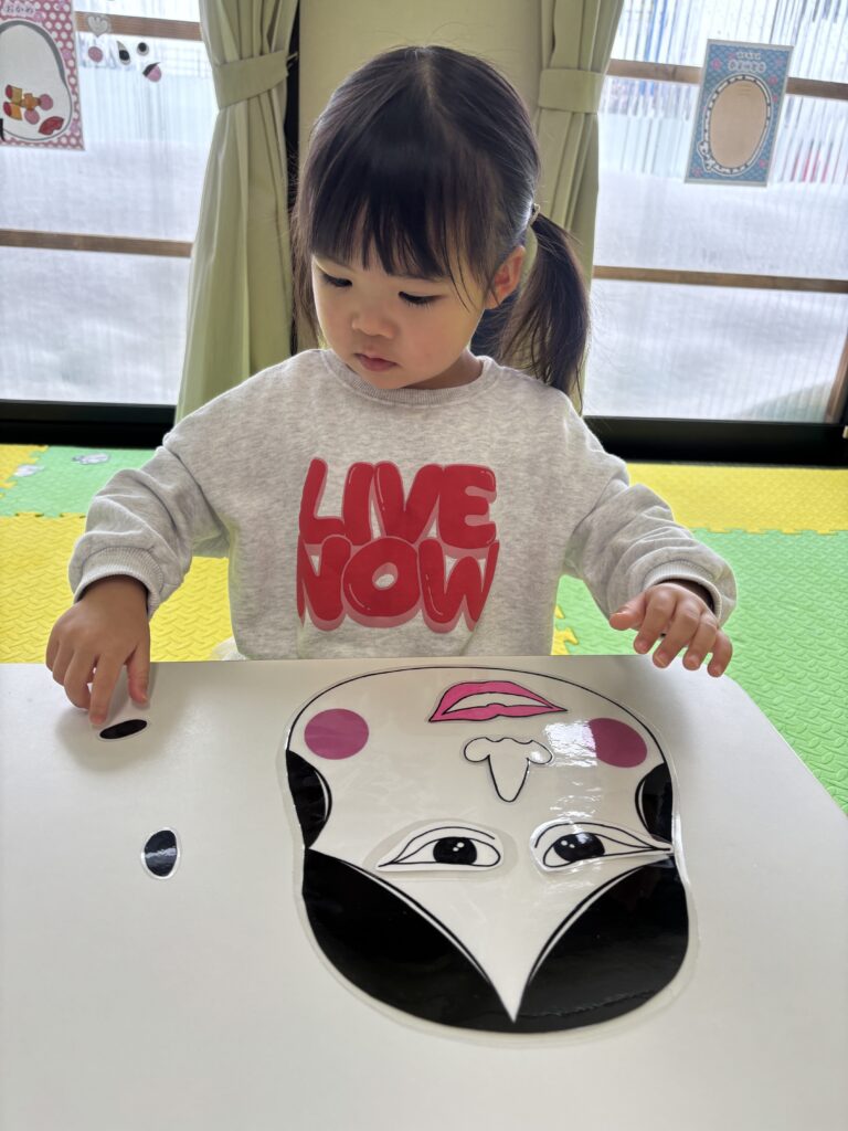 お顔パーツを一つ一つ、しっかりと置いていきます🧐