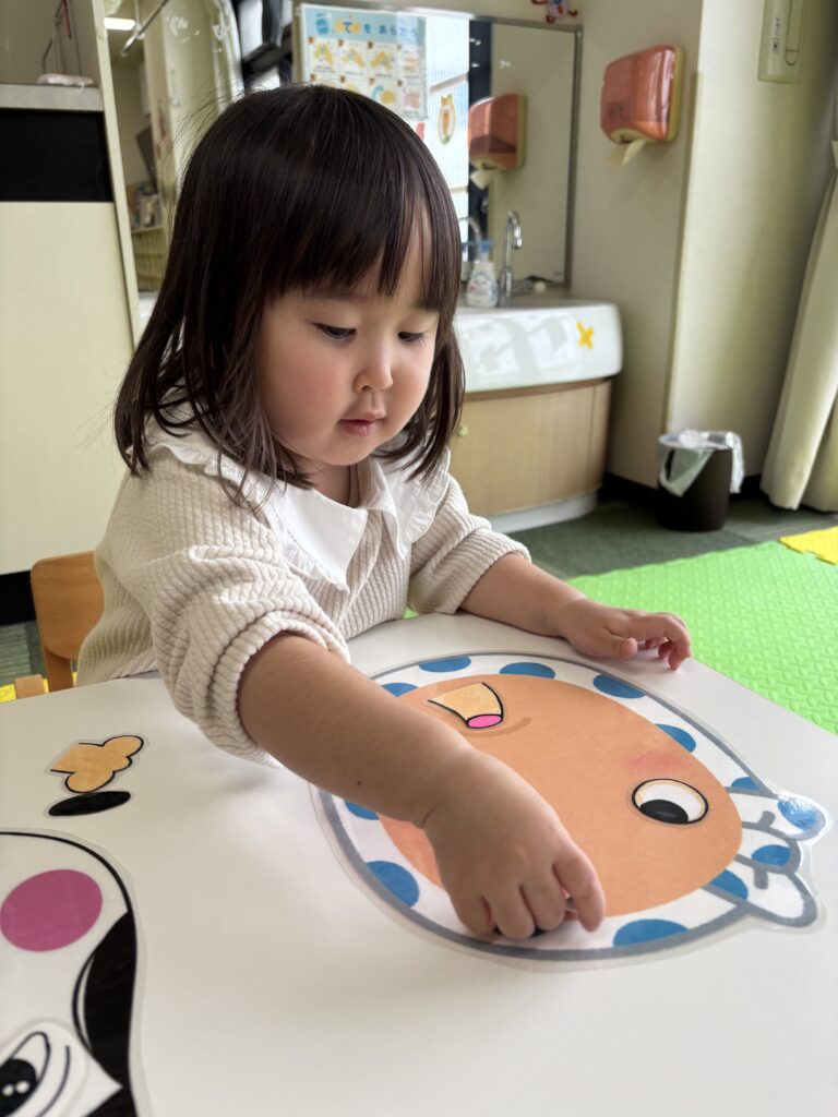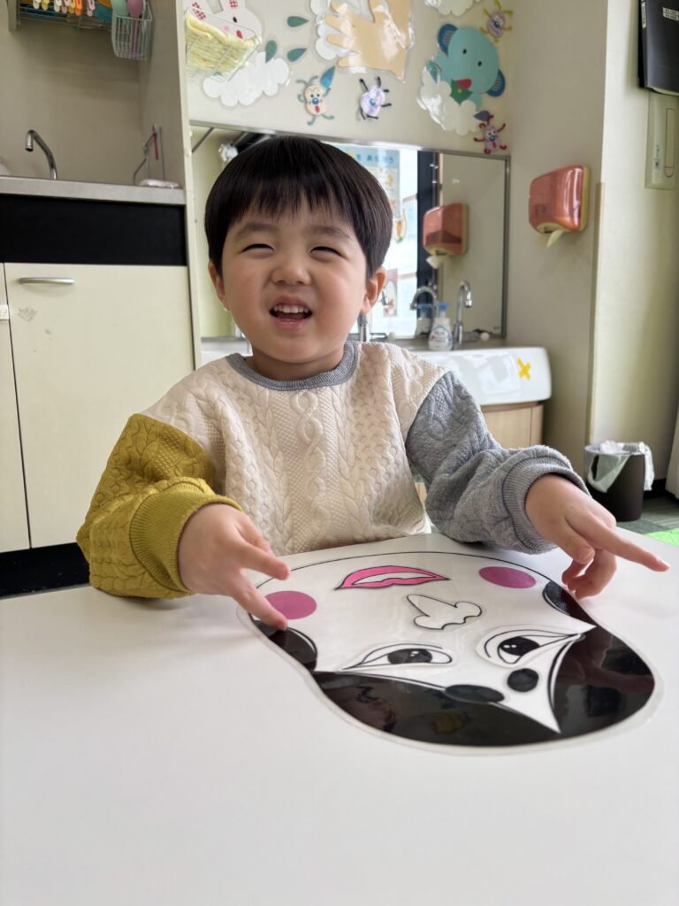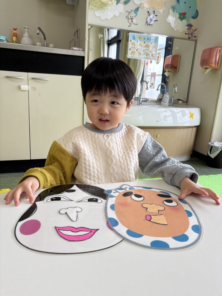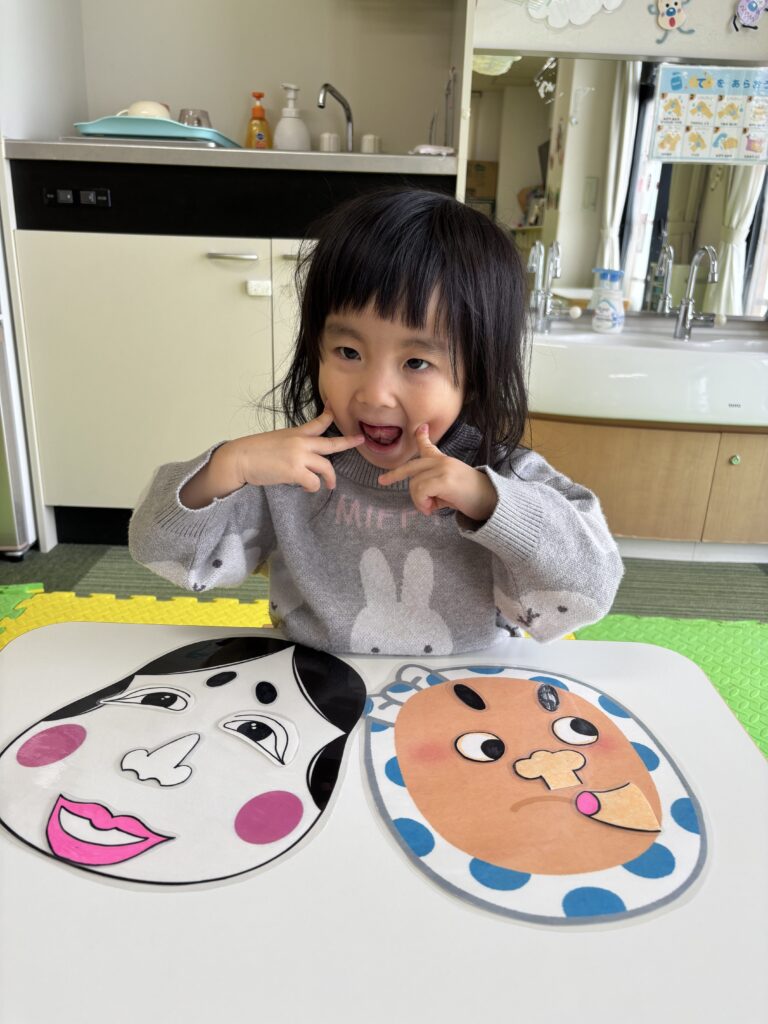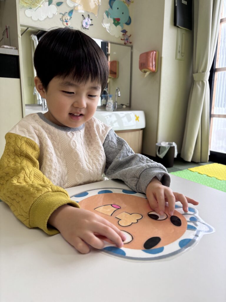 お顔パーツを一つ一つ、しっかりと置いていきます🧐