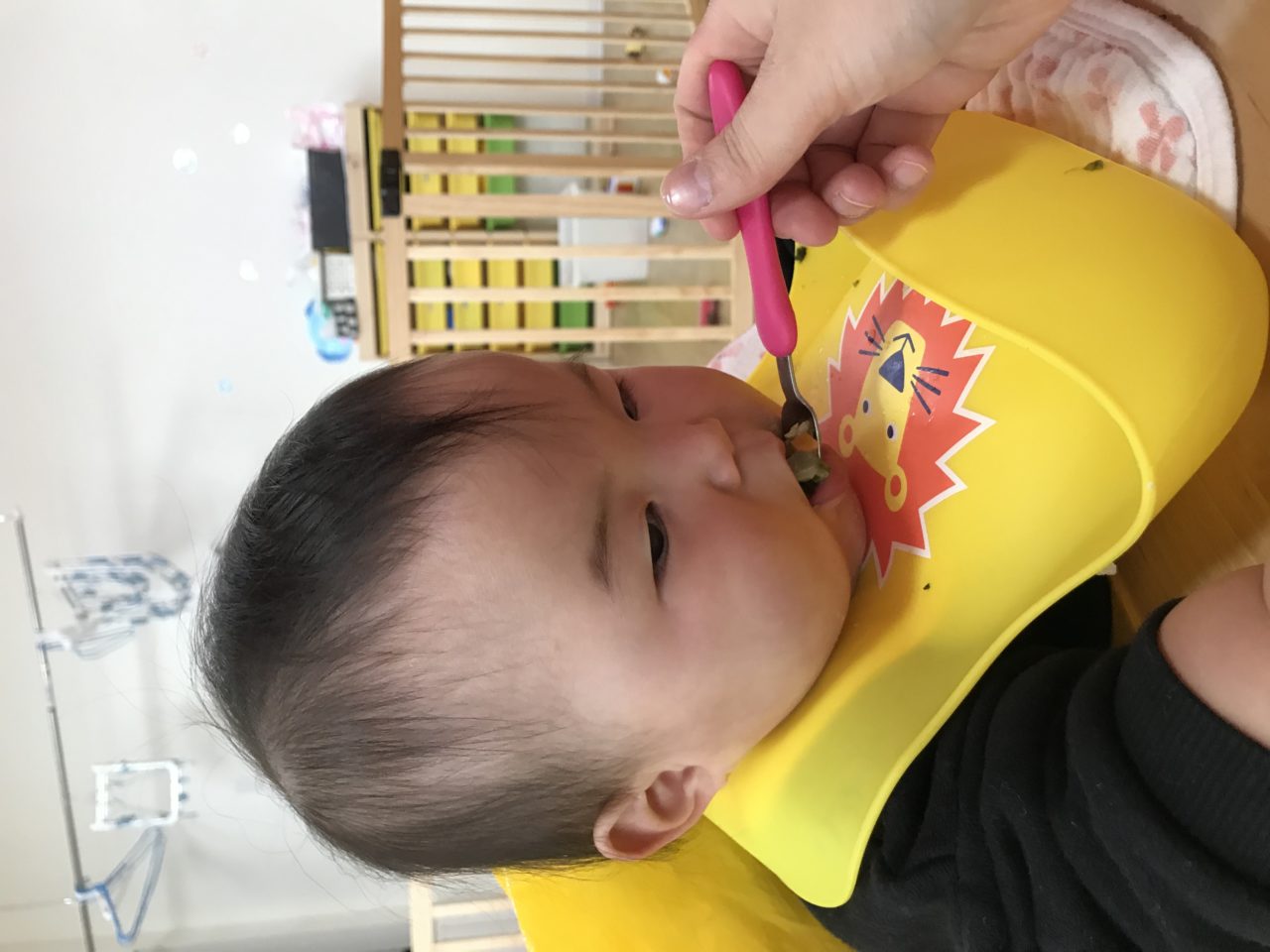 かわいいお口で食べているYちゃんです?おいしくて思わず笑顔が溢れることも…?