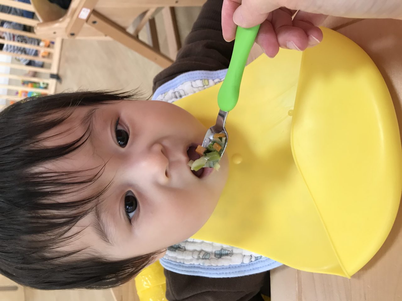 自分でフォークを持つ練習中のYちゃん。お口へ運ぶのがとっても上手です?