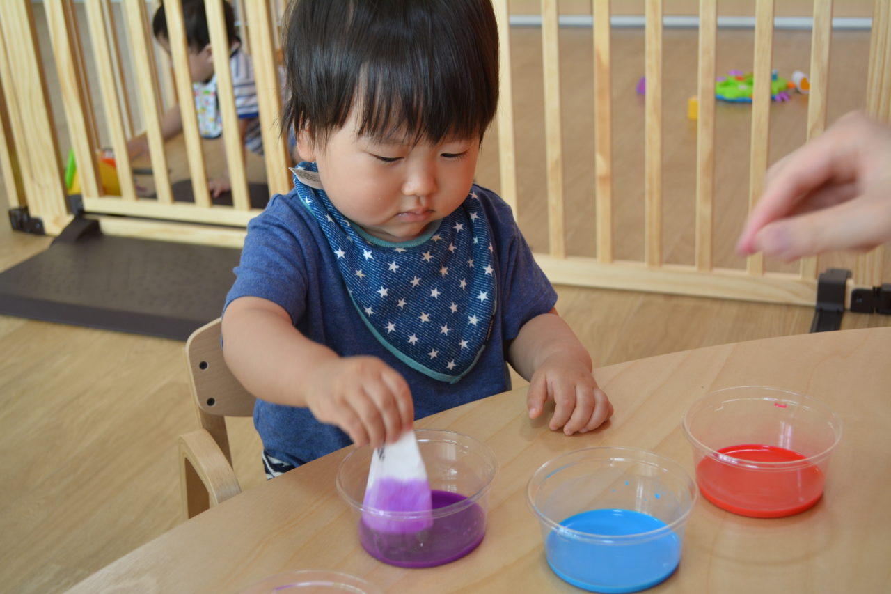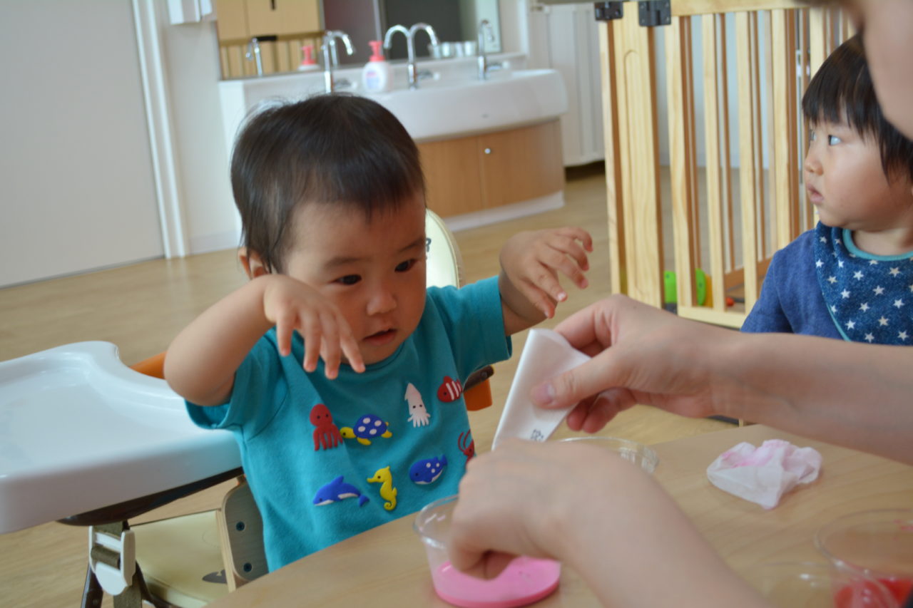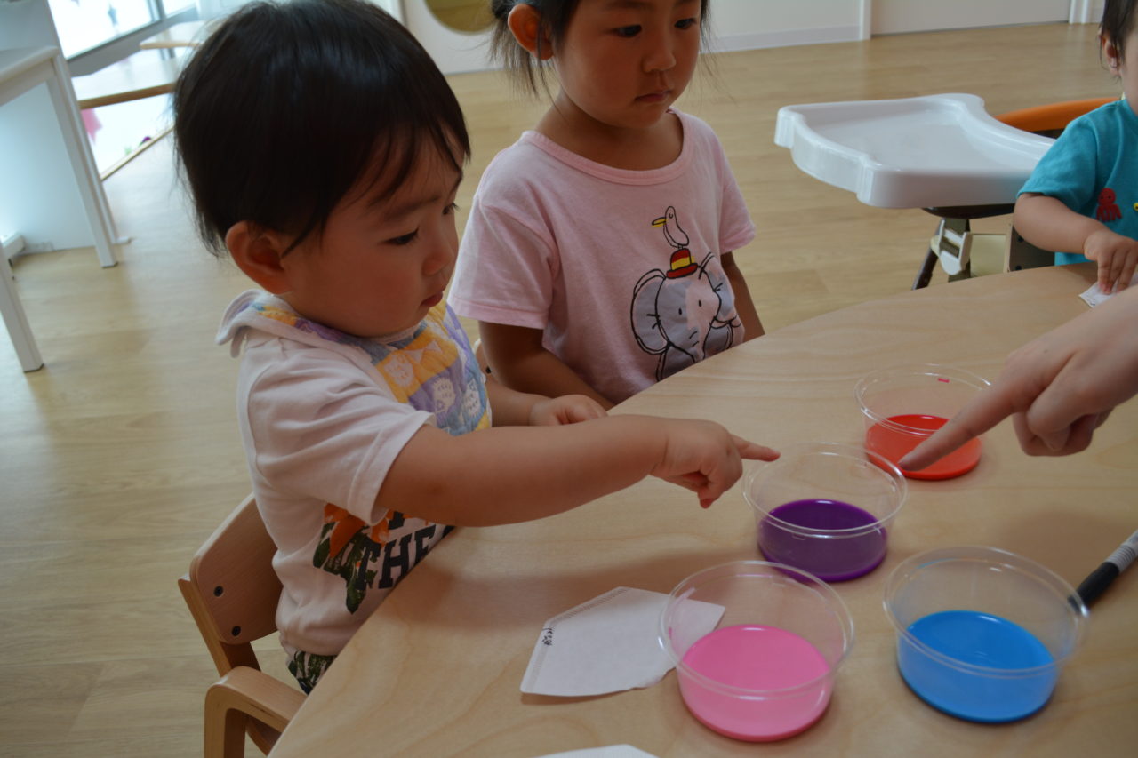 「どれがいい?」と聞くと、指を差したり、使いたい色を自分の前へ持ってきたりと自分で色を決めている子どもたちです(*^^*)
