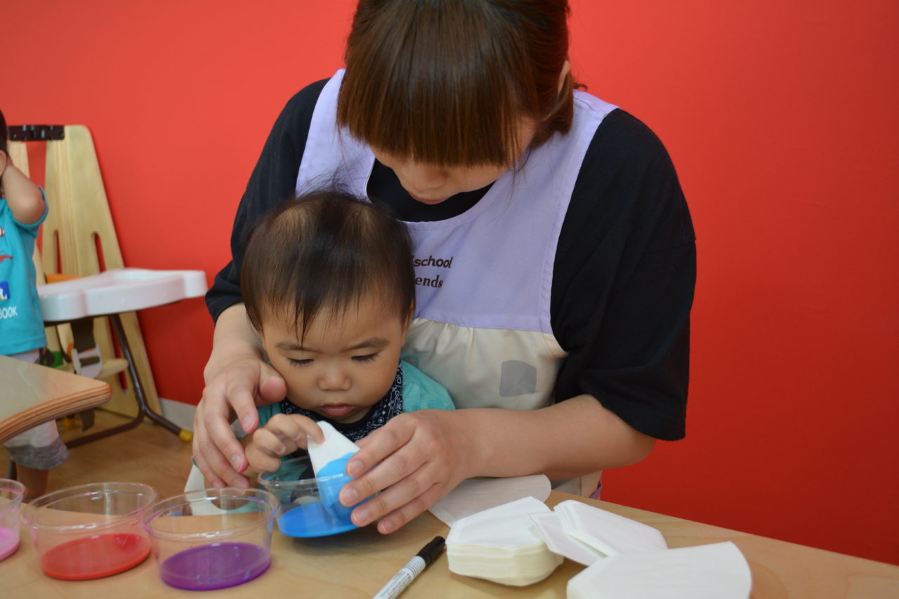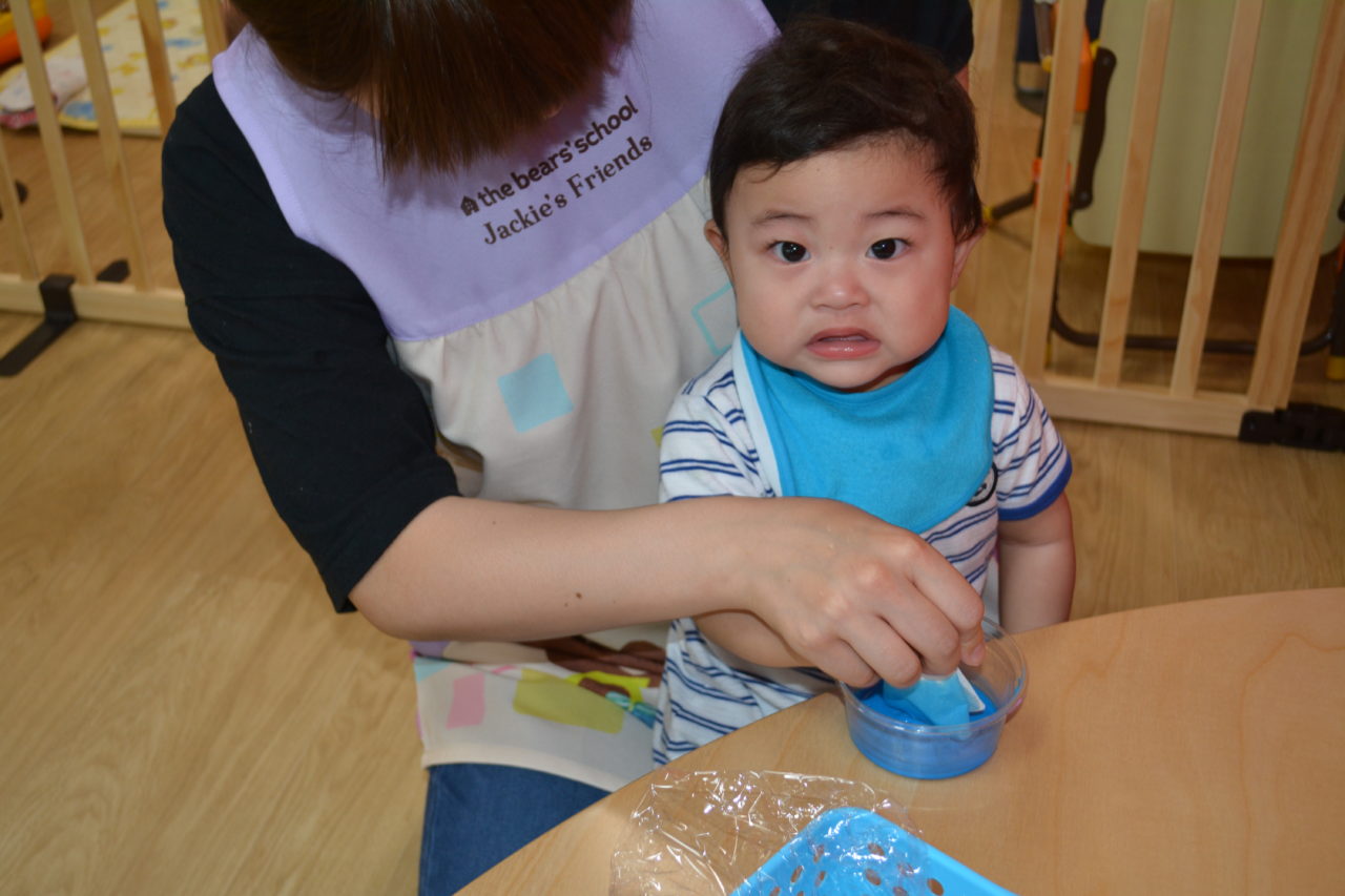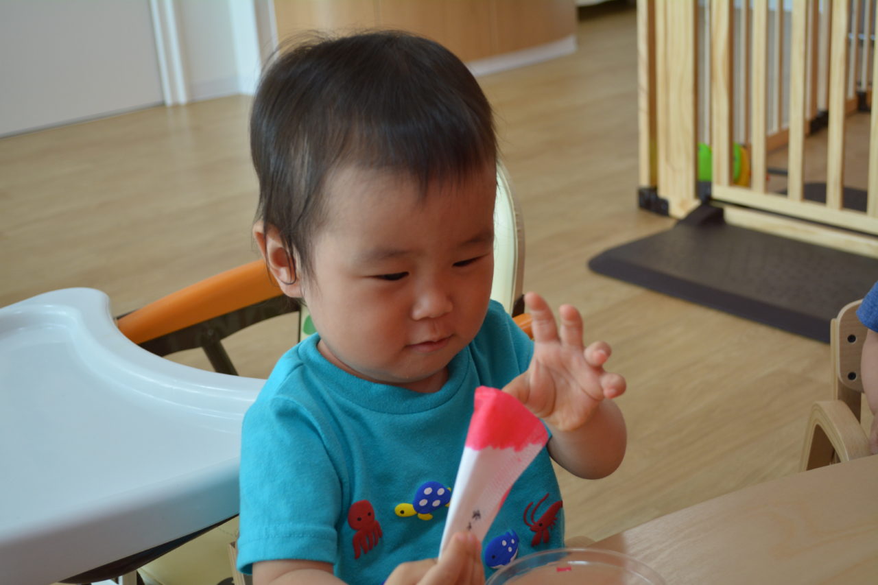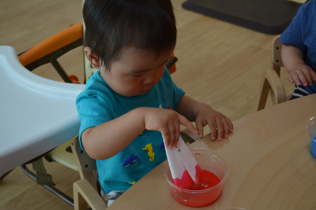 自分で色を付けて嬉しそうなYくんですが、手に絵の具がついてしまったようで手が可愛らしいことになっていますね?♡