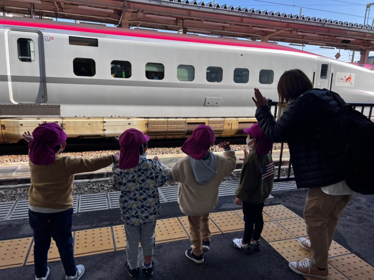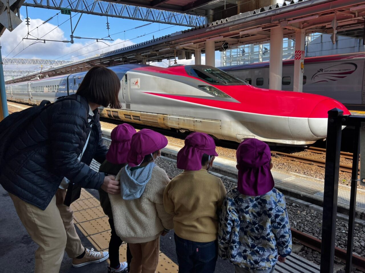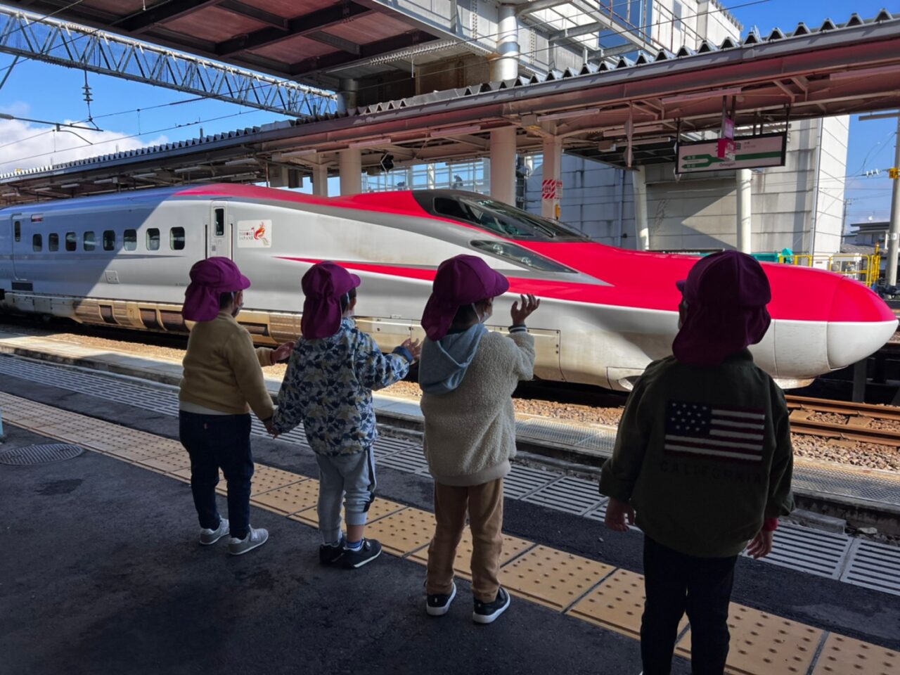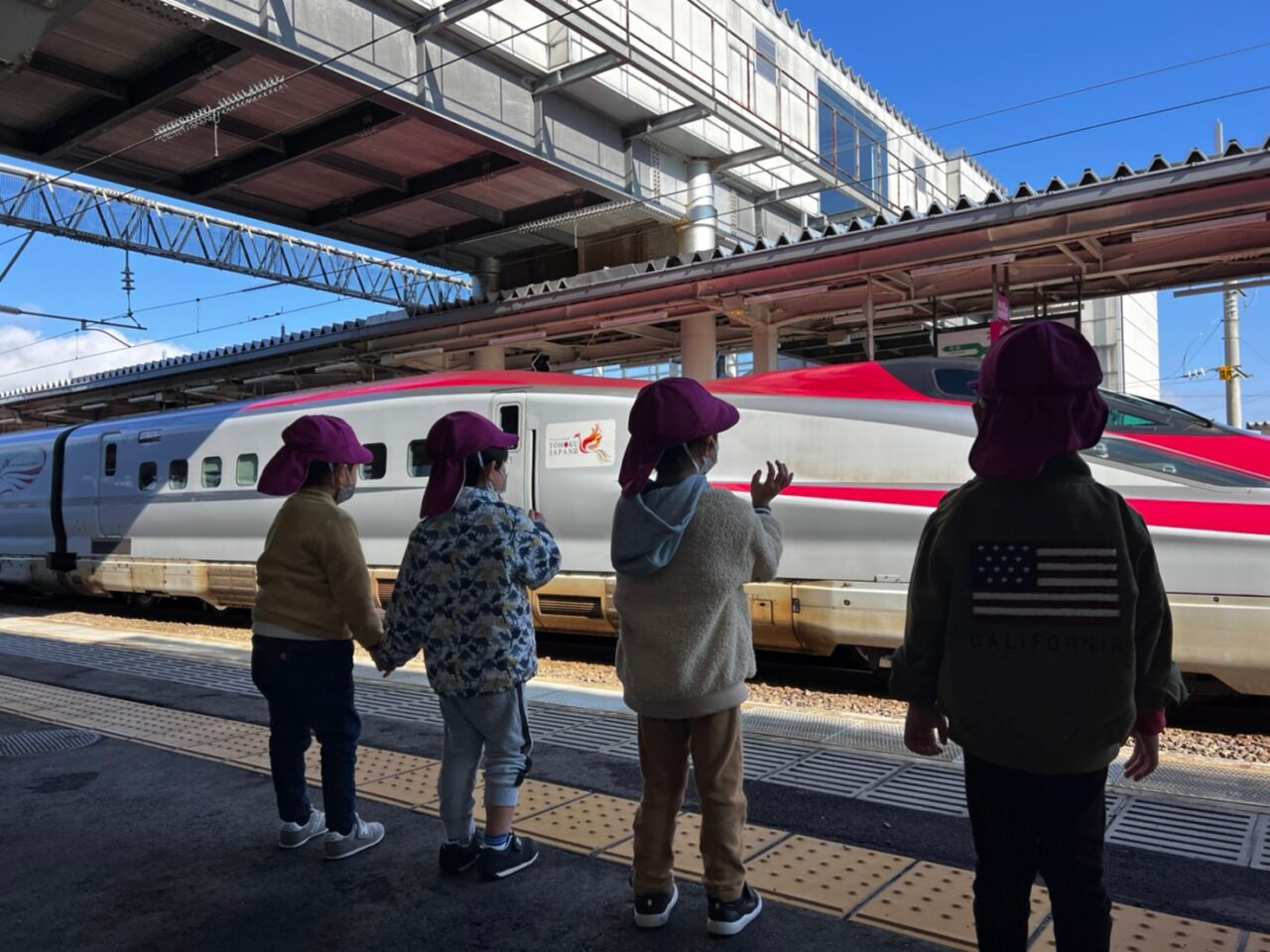 『いってらっしゃ〜い??』とこまちが見えなくなるまで元気に手を振る子どもたちでした?♡こまちに乗っているお客さんの中には子どもたちに気づいて手を振ってくれる方も…子どもたちも嬉しそうでした?