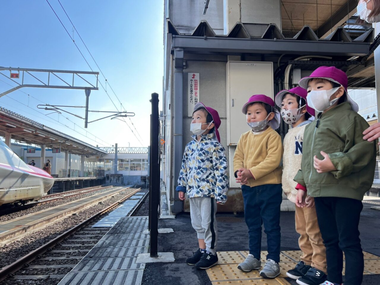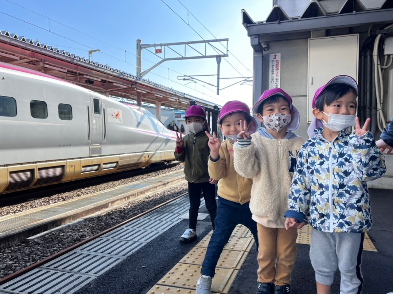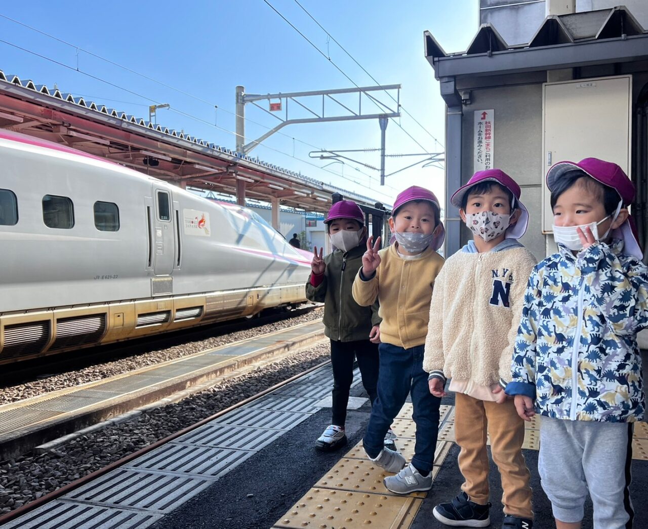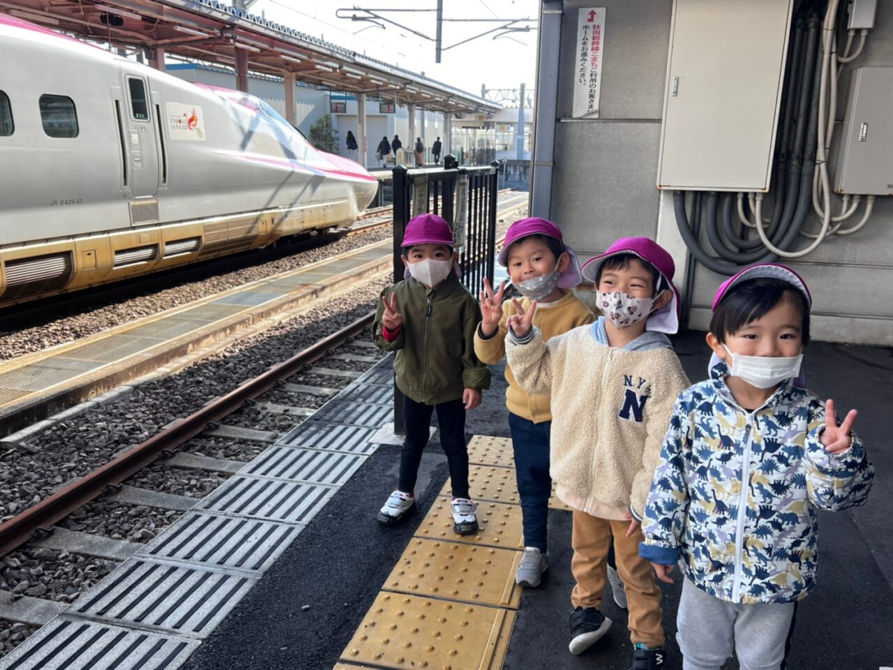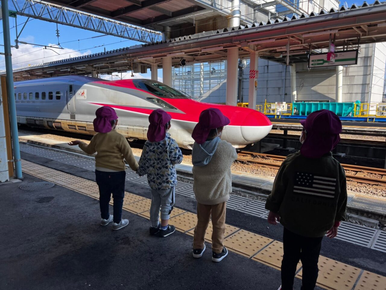 『いってらっしゃ〜い??』とこまちが見えなくなるまで元気に手を振る子どもたちでした?♡こまちに乗っているお客さんの中には子どもたちに気づいて手を振ってくれる方も…子どもたちも嬉しそうでした?